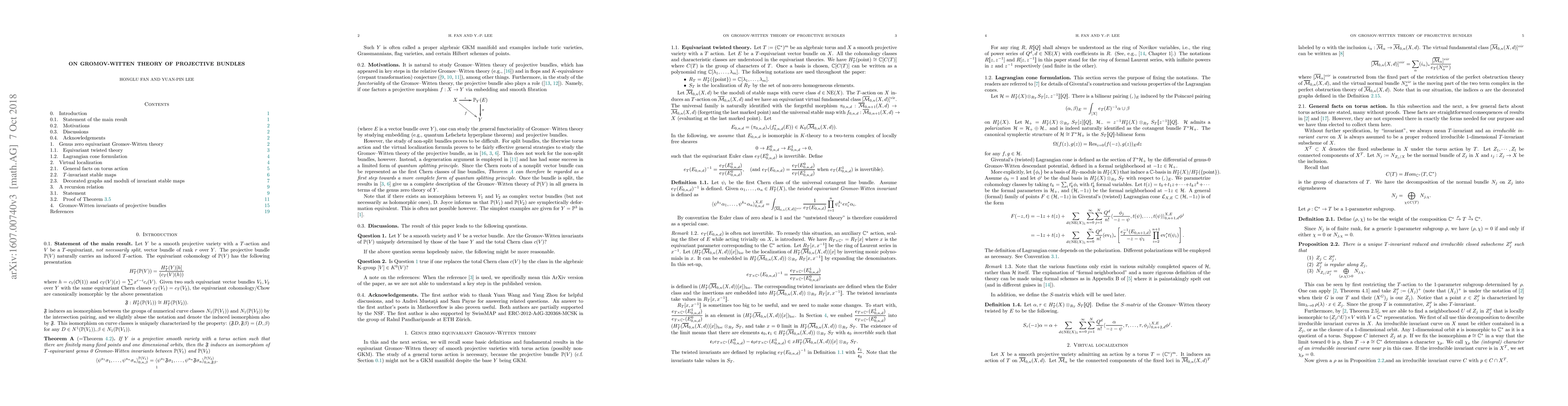 Given two equivariant vector bundles over an algebraic GKM manifold with the same equivariant Chern classes, we show that the genus zero equivariant Gromov--Witten theory of their projective bundles are naturally isomorphic.