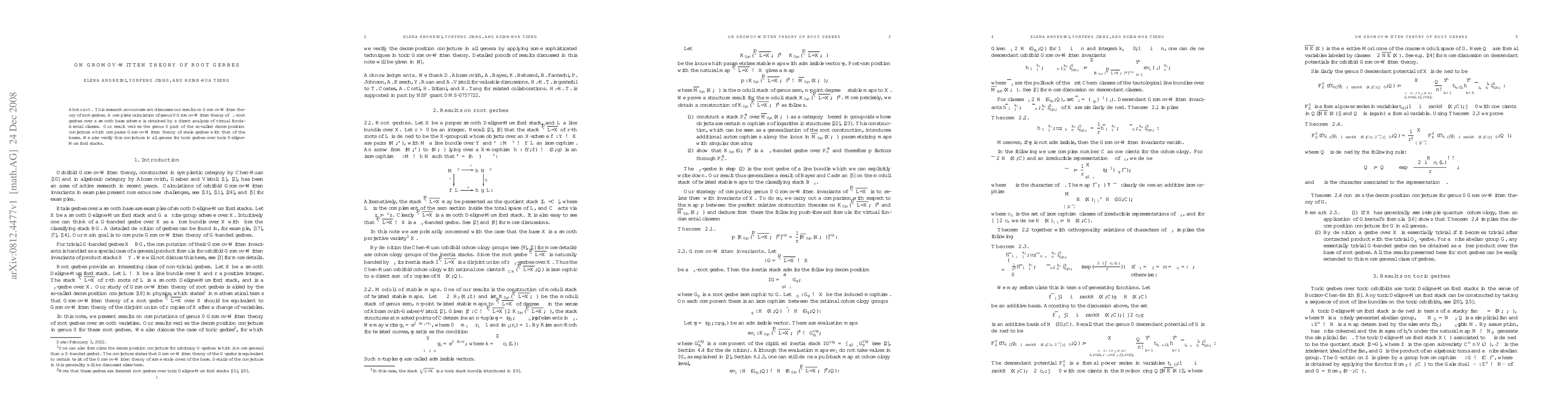 This research announcement discusses our results on Gromov-Witten theory of root gerbes. A complete calculation of genus 0 Gromov-Witten theory of $\mu_{r}$-root gerbes over a smooth base scheme is obtained by a direct analysis of virtual fundamental classes. Our result verifies the genus 0 part of the so-called decomposition conjecture which compares Gromov-Witten theory of \'etale gerbes with that of the bases. We also verify this conjecture in all genera for toric gerbes over toric Deligne-Mumford stacks.