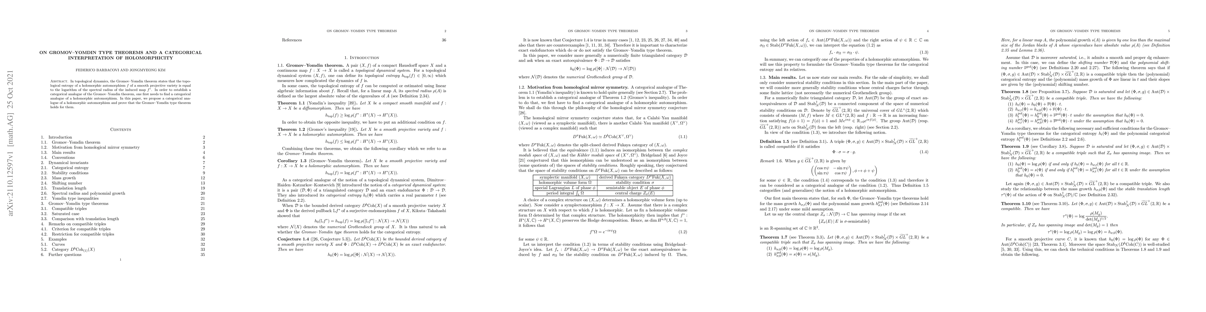 This paper proposes a categorical analogue of holomorphic automorphisms and demonstrates that a Gromov-Yomdin type theorem holds for these analogues, linking topological entropy with the spectral radius in a categorical setting.