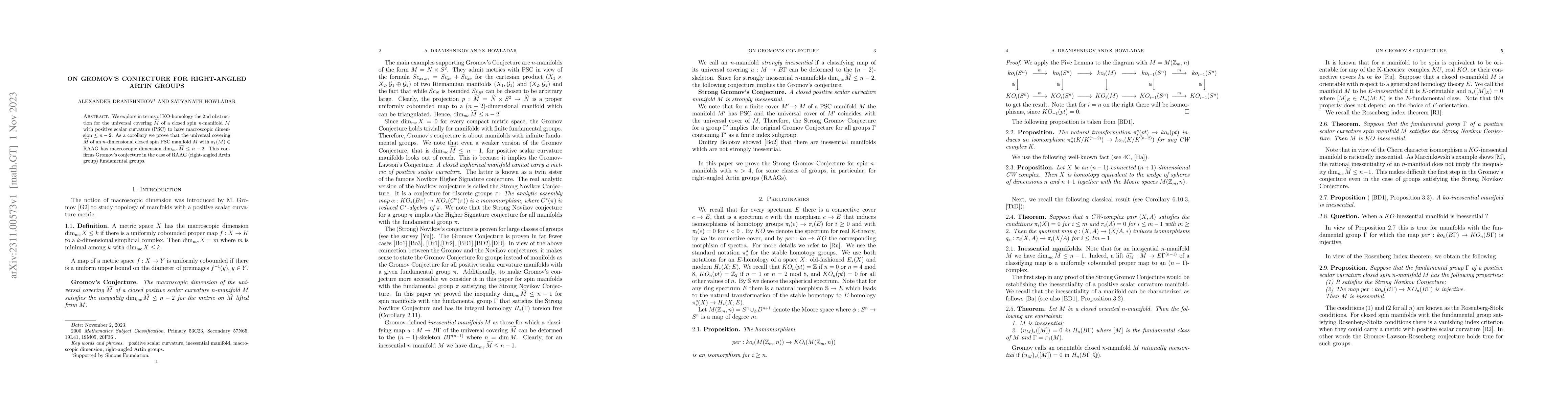 We prove that the universal covering $\Wi M$ of an $n$-dimensional closed spin PSC manifold $M$ whose fundamental group $\pi_1(M)$ is a right-angled Artin group has macroscopic dimension $\dim_{mc}\Wi M\le n-2$. This confirms Gromov's conjecture in the case of right-angled Artin groups.