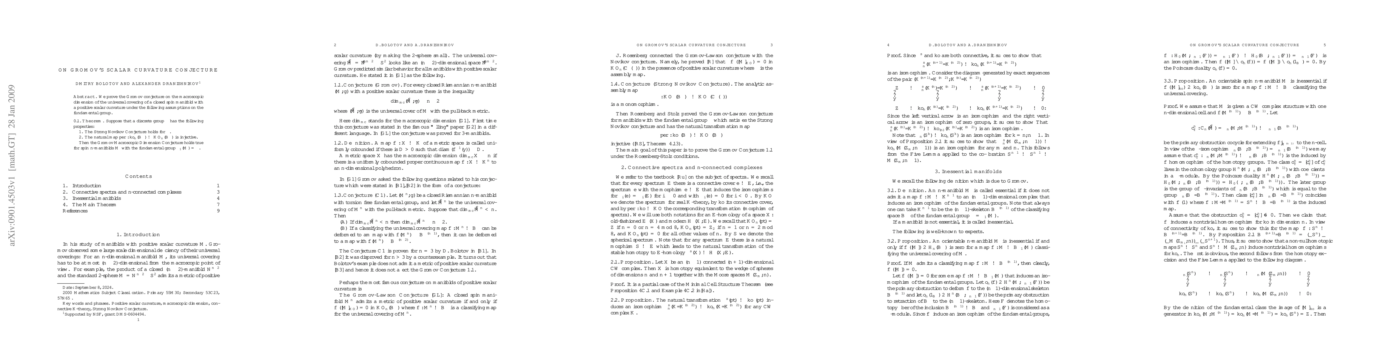 Summary: This paper proves Gromov's conjecture regarding the macroscopic dimension of the universal cover of a closed spin manifold with positive scalar curvature, assuming the Strong Novikov Conjecture and injectivity of the natural map $per:ko_n(B\pi)\to KO_n(B\pi)$ for the fundamental group.