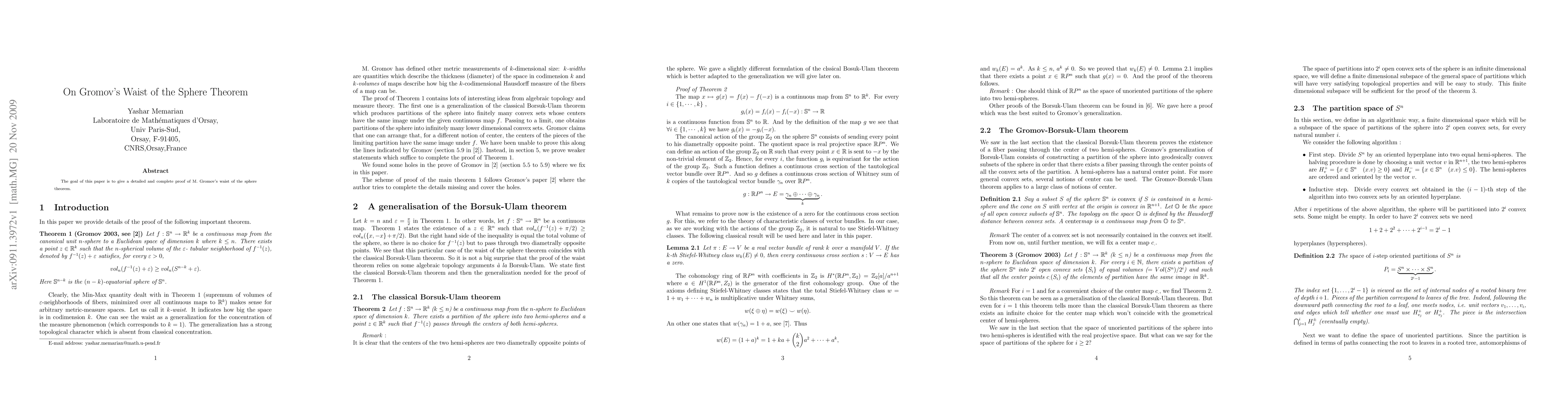The paper provides a detailed proof of Gromov's waist of the sphere theorem using geometric and topological techniques.