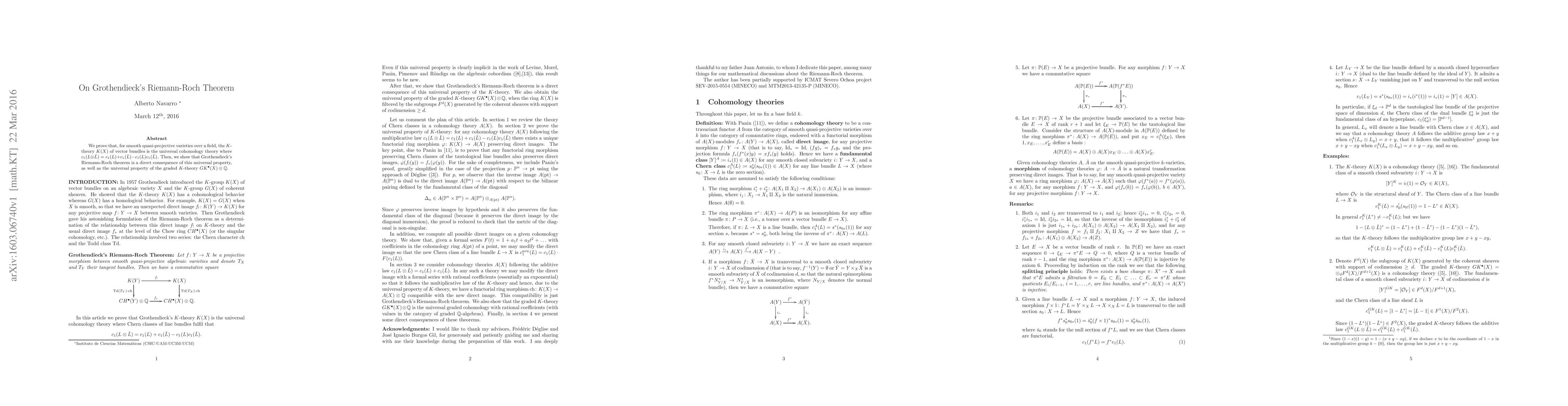 We prove that, for smooth quasi-projective varieties over a field, the $K$-theory $K(X)$ of vector bundles is the universal cohomology theory where $c_1(L\otimes \bar L)=c_1(L)+c_1(\bar L)-c_1(L)c_1(\bar L)$. Then, we show that Grothendieck's Riemann-Roch theorem is a direct consequence of this universal property, as well as the universal property of the graded $K$-theory $GK^\bullet (X)\otimes \mathbb{Q}$.