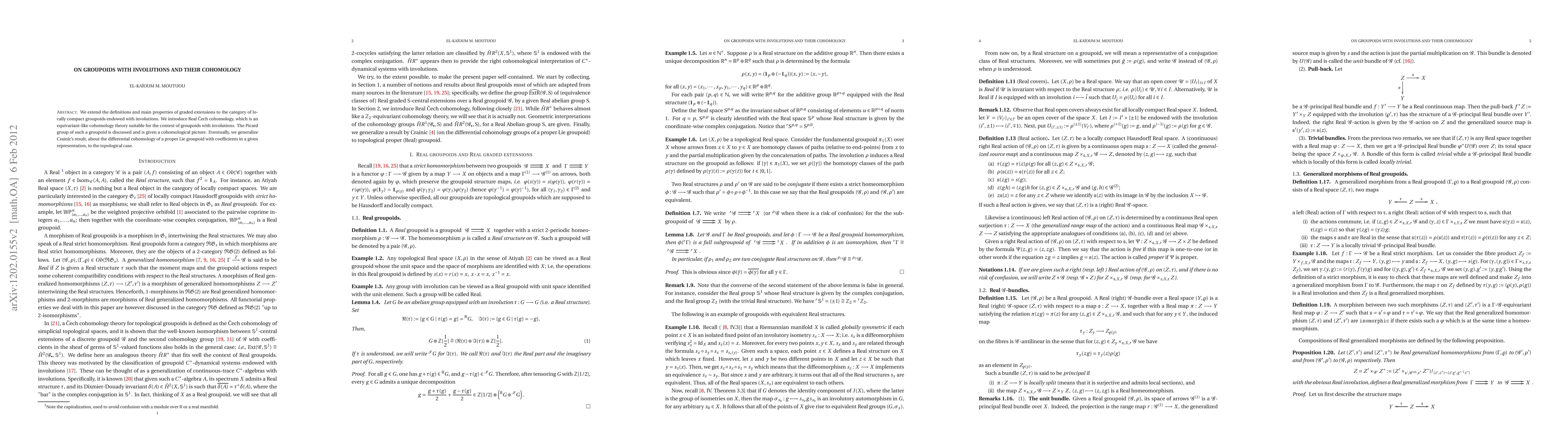 This paper extends graded extensions to locally compact groupoids with involutions, introducing Real Čech cohomology for this context. It discusses the Picard group's cohomological representation and generalizes Crainic's differential cohomology result to topological groupoids.