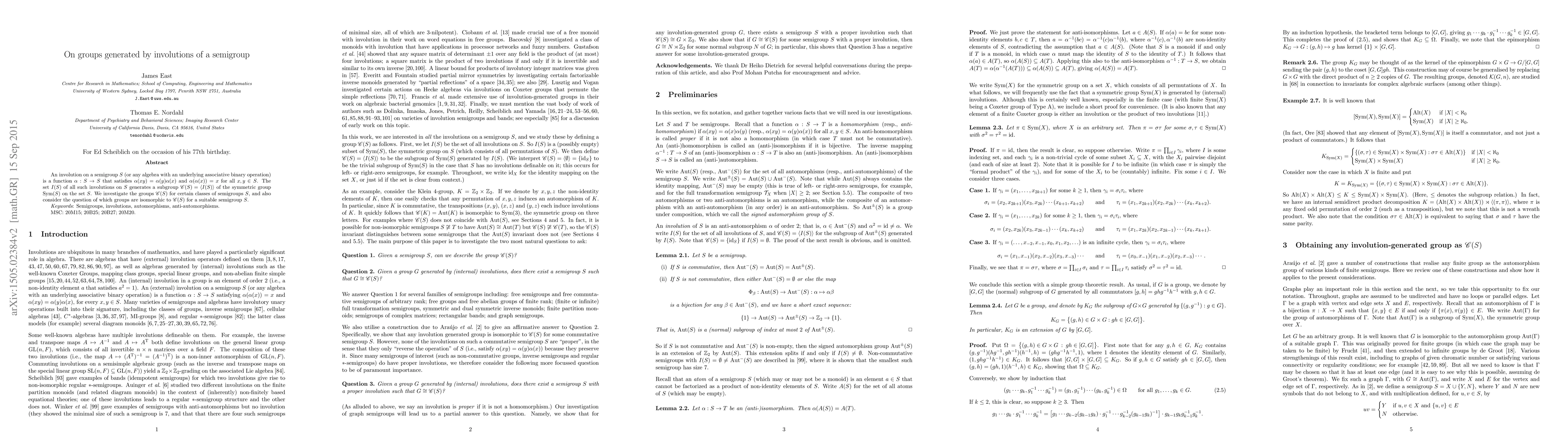 This research explores the groups C(S) generated by involutions of semigroups S, focusing on specific semigroup classes. It investigates which groups can be isomorphic to C(S) for appropriate semigroups S, utilizing properties of involutions and symmetric groups.