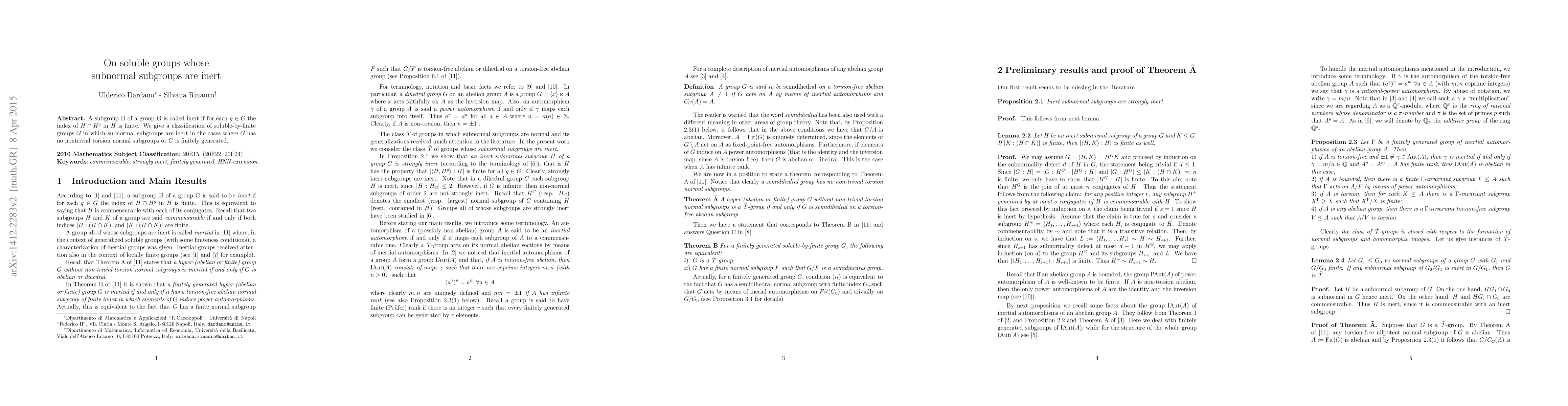 This paper classifies soluble-by-finite groups where all subnormal subgroups are inert, specifically focusing on groups without nontrivial torsion normal subgroups and finitely generated groups. The authors provide detailed conditions under which such groups can be characterized.