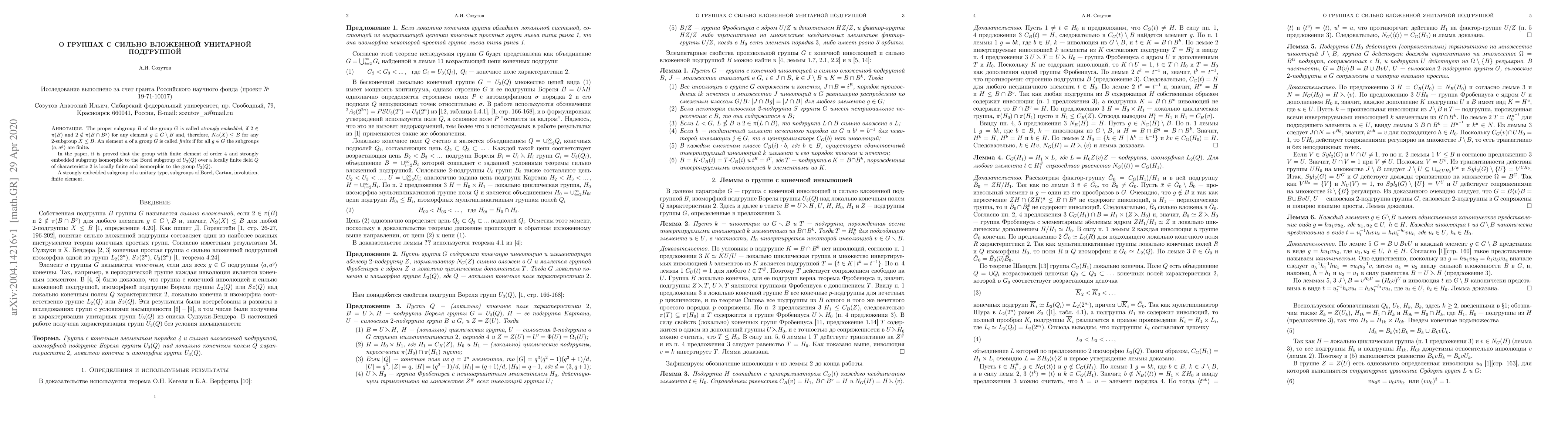 This paper investigates groups containing a strongly embedded subgroup, specifically focusing on groups with a finite element of order 4. It proves that such groups, when possessing a strongly embedded subgroup isomorphic to the Borel subgroup of a unitary group, are locally finite and isomorphic to the group $U_3(Q)$.