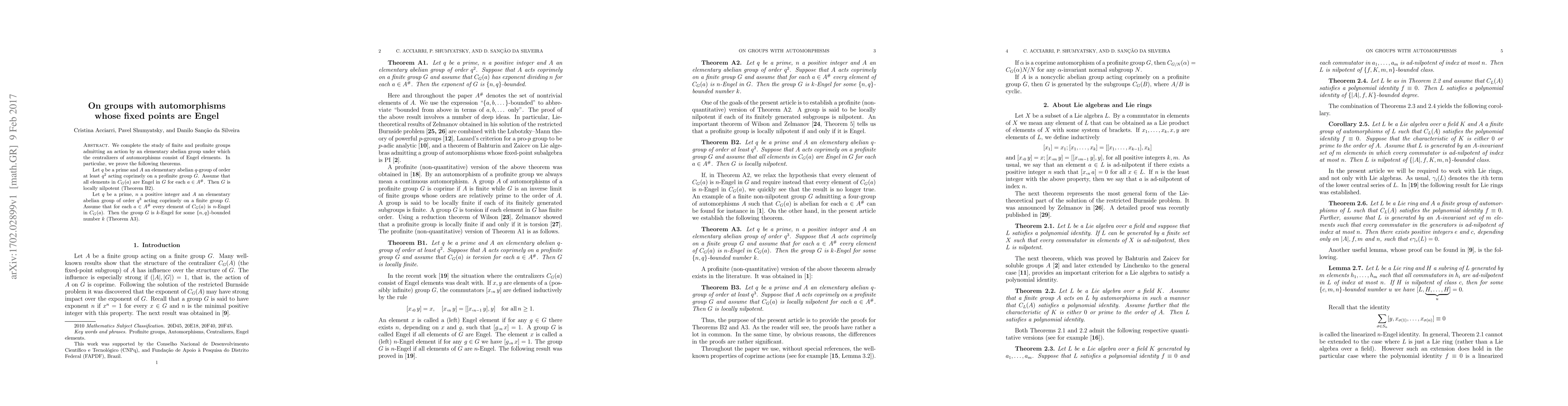 We complete the study of finite and profinite groups admitting an action by an elementary abelian group under which the centralizers of automorphisms consist of Engel elements. In particular, we prove the following theorems. Let $q$ be a prime and $A$ an elementary abelian $q$-group of order at least $q^2$ acting coprimely on a profinite group $G$. Assume that all elements in $C_{G}(a)$ are Engel in $G$ for each $a\in A^{\#}$. Then $G$ is locally nilpotent (Theorem B2). Let $q$ be a prime, $n$ a positive integer and $A$ an elementary abelian group of order $q^3$ acting coprimely on a finite group $G$. Assume that for each $a\in A^{\#}$ every element of $C_{G}(a)$ is $n$-Engel in $C_{G}(a)$. Then the group $G$ is $k$-Engel for some $\{n,q\}$-bounded number $k$ (Theorem A3).