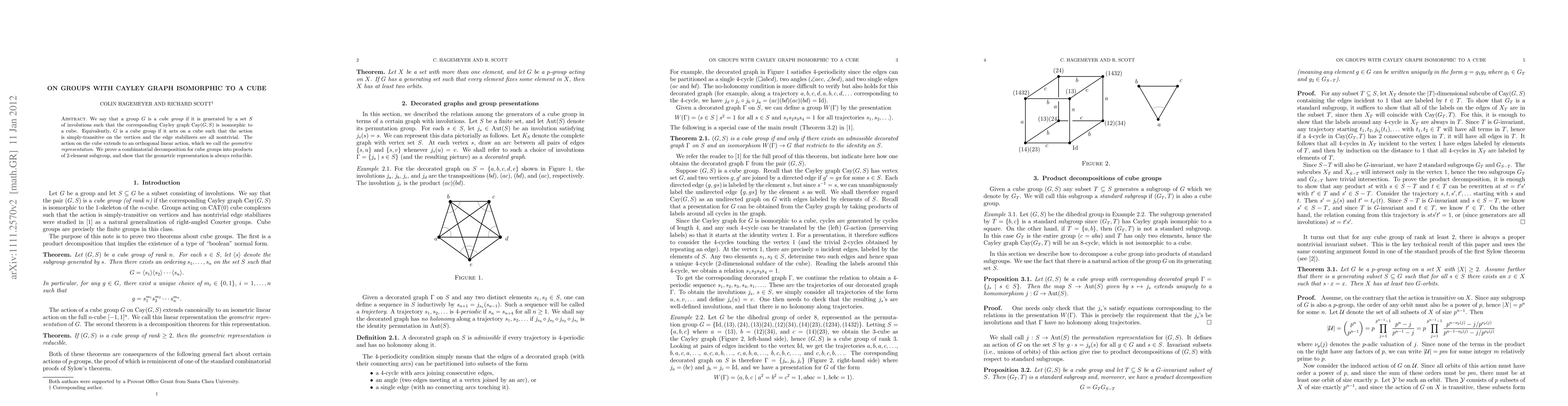 Researchers identified a combinatorial decomposition of cube groups into products of 2-element subgroups and showed that the geometric representation is always reducible, providing new insights into these special groups.