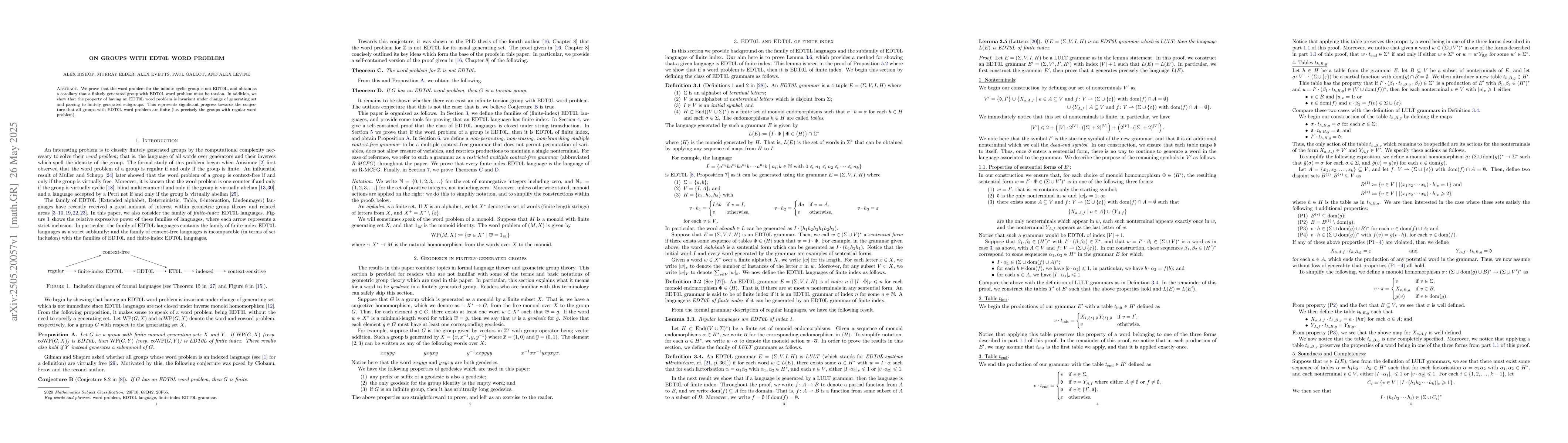 The research employs group theory and formal language techniques, specifically focusing on EDT0L grammars to analyze group word problems.