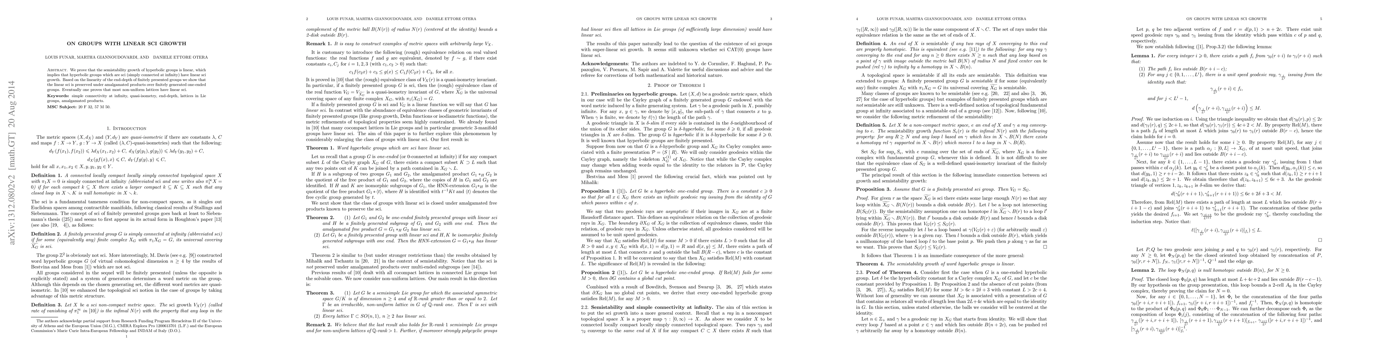We prove that the semistability growth of hyperbolic groups is linear, which implies that hyperbolic groups which are sci (simply connected at infinity) have linear sci growth. Based on the linearity of the end-depth of finitely presented groups we show that the linear sci is preserved under amalgamated products over finitely generated one-ended groups. Eventually one proves that most non-uniform lattices have linear sci.
