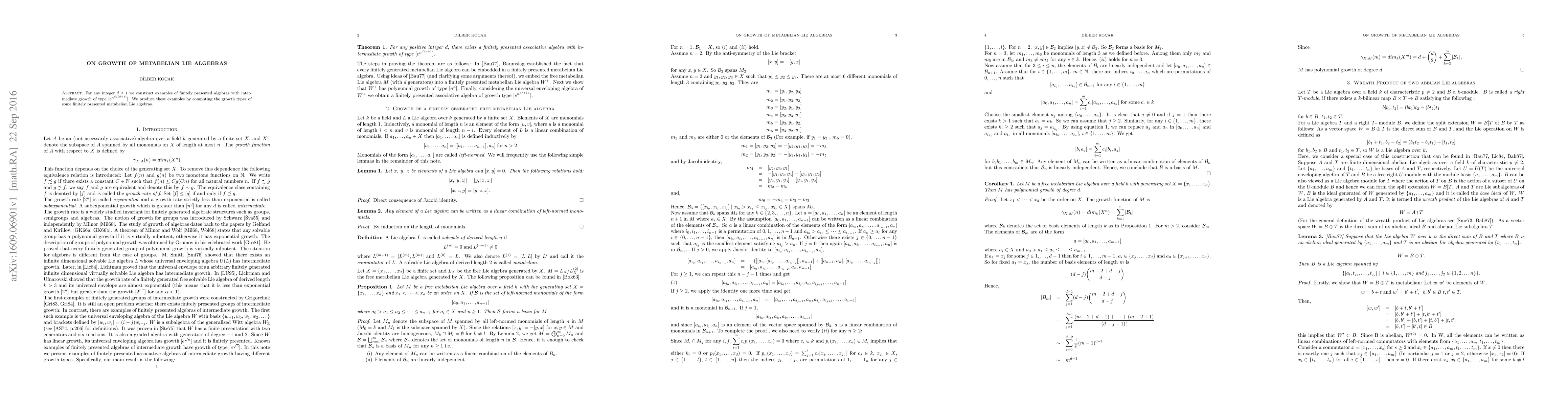 For any integer $d\geq 1$ we construct examples of finitely presented algebras with intermediate growth of type $[e^{n^{d/(d+1)}}]$. We produce these examples by computing the growth types of some finitely presented metabelian Lie algebras.
