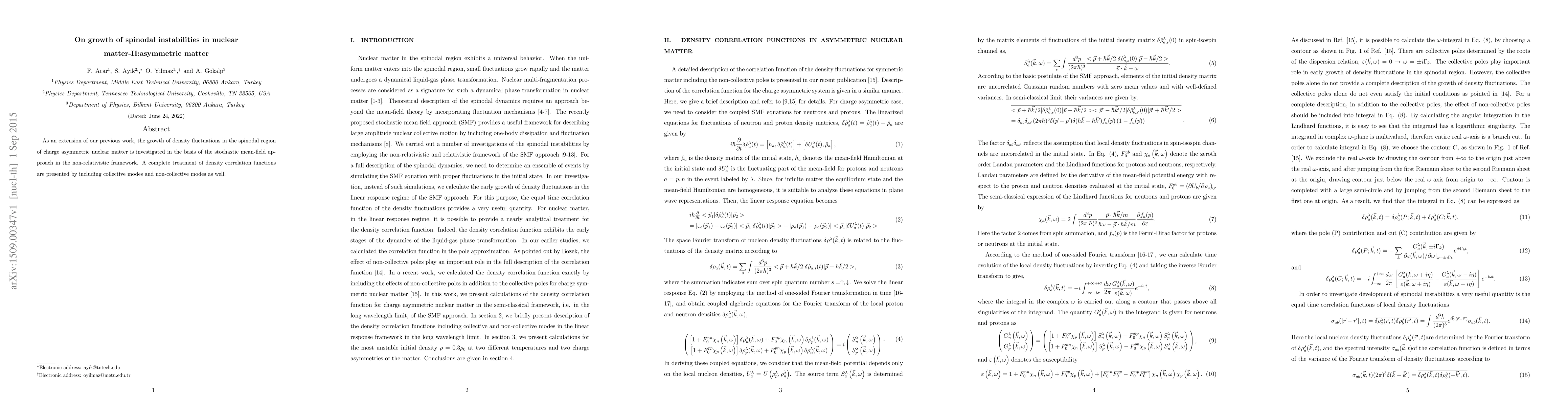 This paper investigates the growth of density fluctuations in asymmetric nuclear matter within the spinodal region using a stochastic mean-field approach. It provides a comprehensive treatment of density correlation functions, incorporating both collective and non-collective modes.