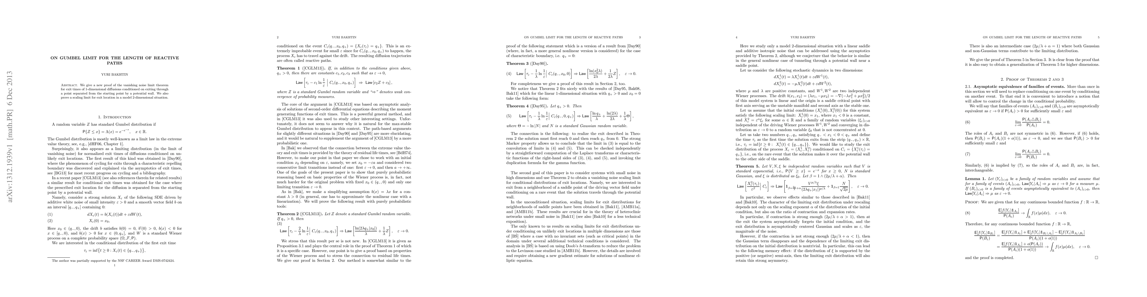 We give a new proof of the vanishing noise limit theorem for exit times of 1-dimensional diffusions conditioned on exiting through a point separated from the starting point by a potential wall. We also prove a scaling limit for exit location in a model 2-dimensional situation.