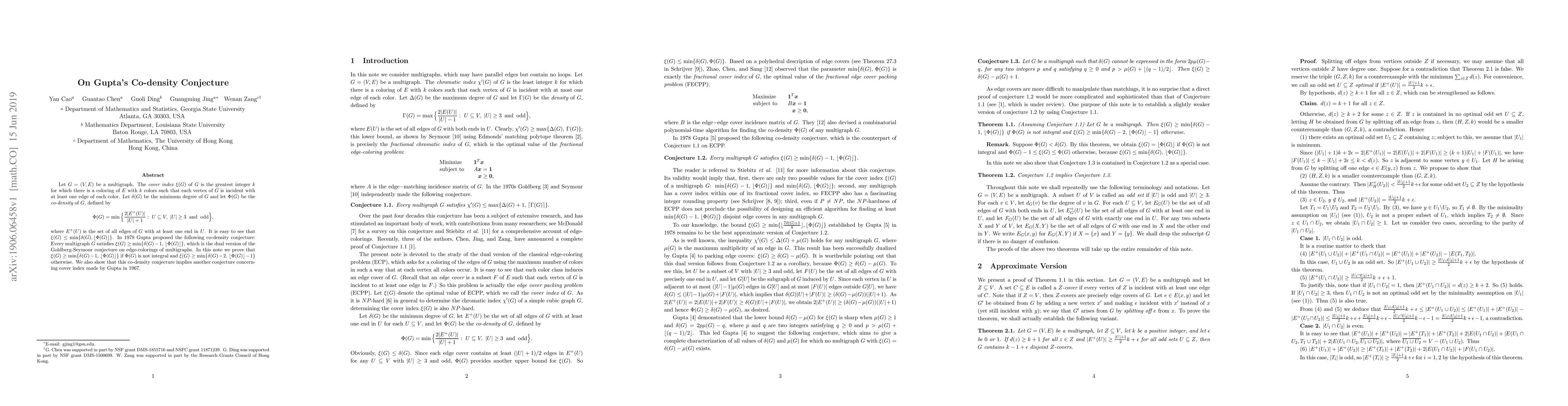 The paper proves a variation of Gupta's Co-density Conjecture, showing that for certain conditions, the cover index is at least as large as the minimum between the minimum degree minus one or the floor of co-density, and also implies another 1967 conjecture concerning cover index.