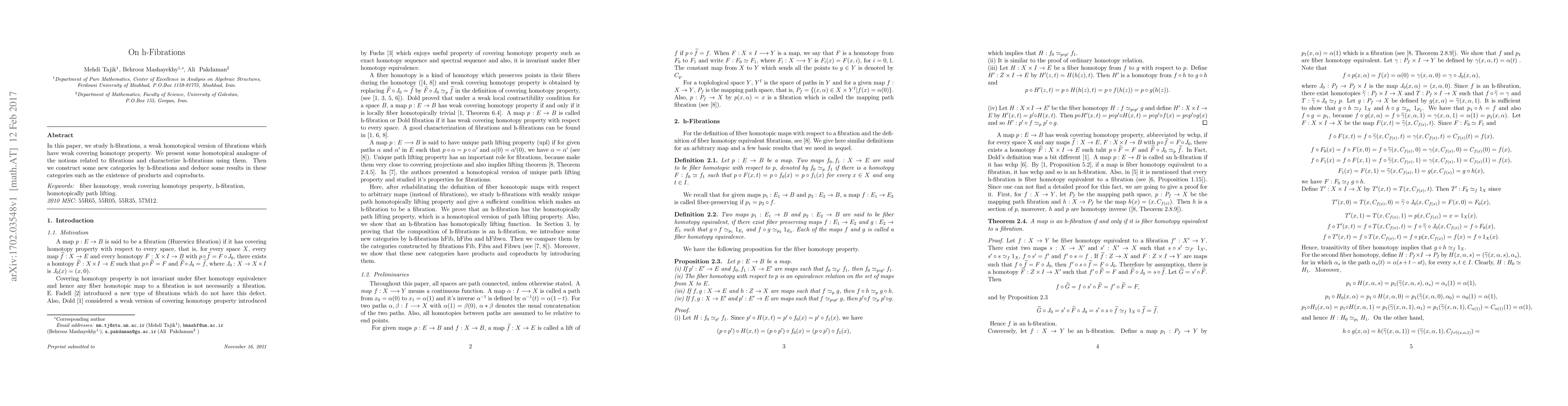 This paper explores h-fibrations, a weak homotopical version of fibrations, and characterizes them using homotopical analogues. It constructs new categories via h-fibrations and proves the existence of products and coproducts within these categories.
