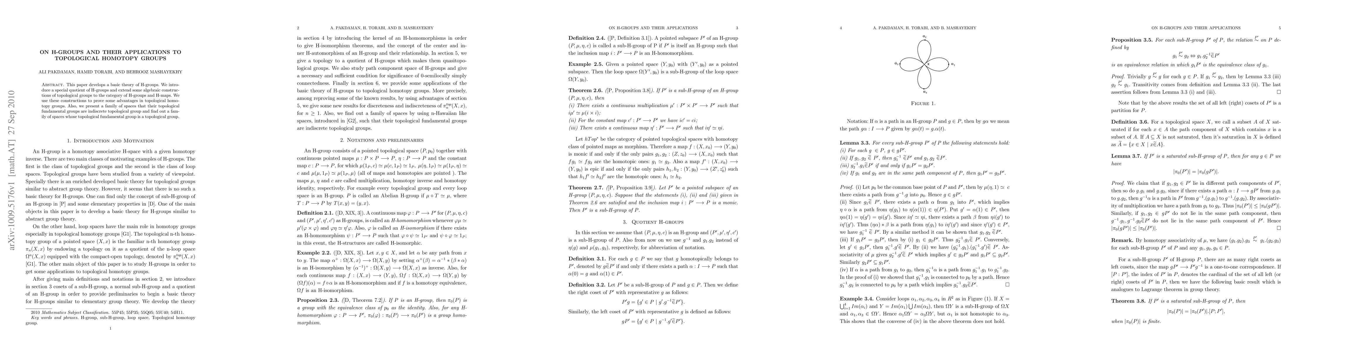 This paper establishes a foundational theory for H-groups, introducing special quotients and extending algebraic constructions from topological groups to H-groups. It demonstrates advantages in topological homotopy groups and identifies spaces with indiscrete fundamental groups.