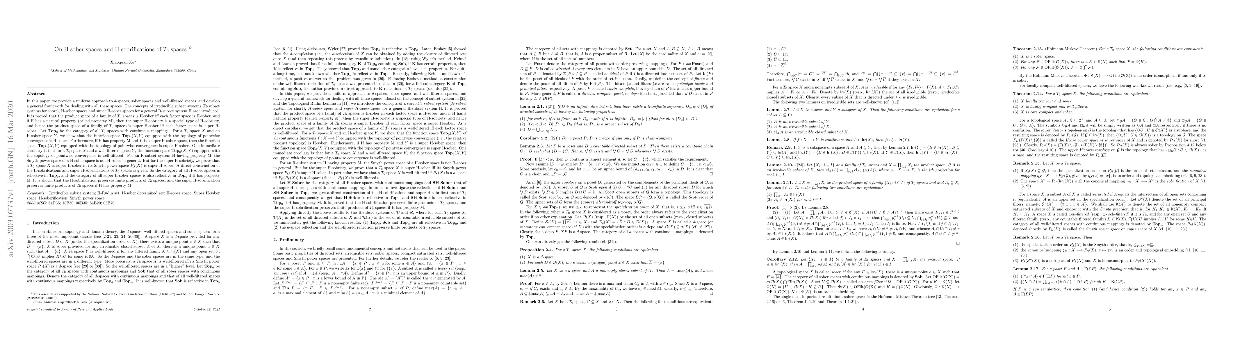 In this paper, we provide a uniform approach to $d$-spaces, sober spaces and well-filtered spaces, and develop a general framework for dealing with all these spaces. For a subset system H, the theory of H-sober spaces and super H-sober spaces is established, and a direct construction of the H-sobrifcations and super H-sobrifications of $T_0$ spaces is given. Therefore, the category of all H-sober spaces is reflective in $\mathbf{Top}_0$, and the category of all super H-sober spaces is also reflective in $\mathbf{Top}_0$ if H has a natural property (called property M). It is shown that the H-sobrification preserves finite products of $T_0$ spaces, and the super H-sobrification preserves finite products of $T_0$ spaces if H has property M.