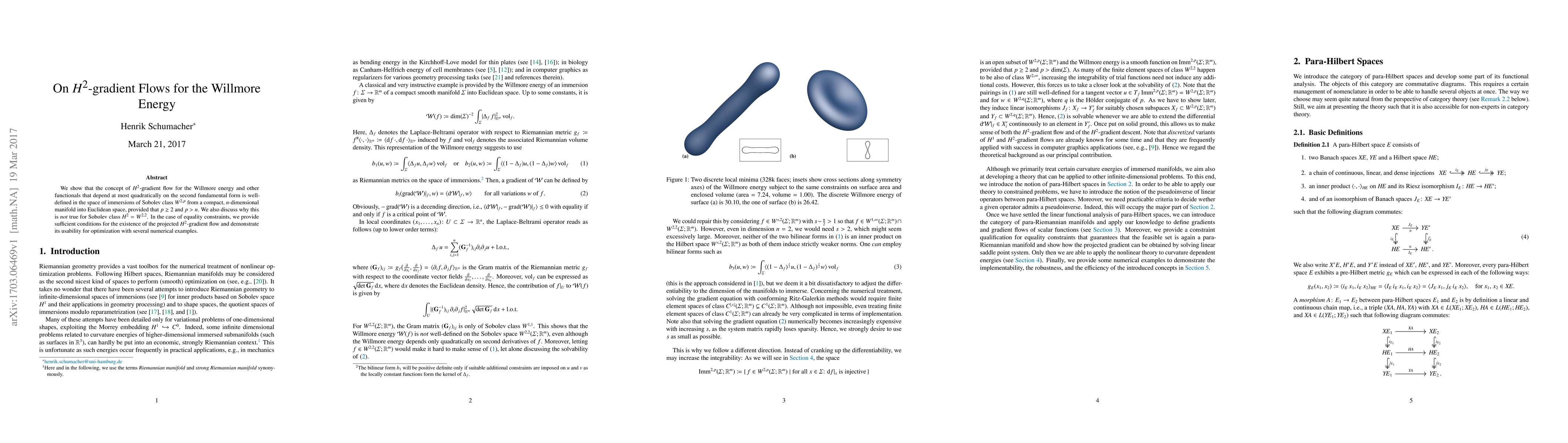 We show that the concept of $H^2$-gradient flow for the Willmore energy and other functionals that depend at most quadratically on the second fundamental form is well-defined in the space of immersions of Sobolev class $W^{2,p}$ from a compact, $n$-dimensional manifold into Euclidean space, provided that $p \geq 2$ and $p>n$. We also discuss why this is not true for Sobolev class $H^2=W^{2,2}$. In the case of equality constraints, we provide sufficient conditions for the existence of the projected $H^2$-gradient flow and demonstrate its usability for optimization with several numerical examples.