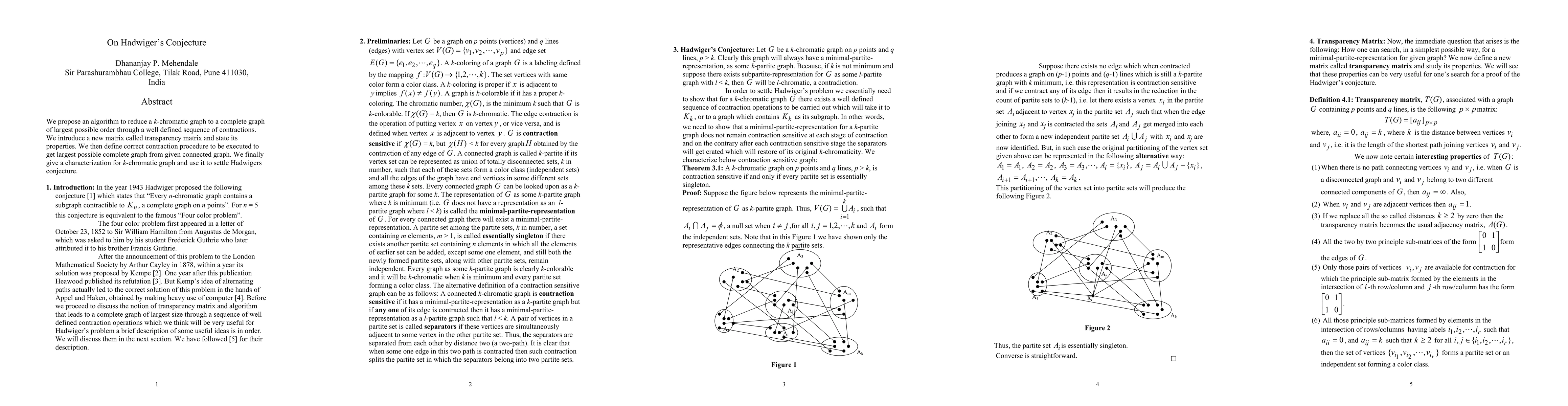Researchers propose an algorithm to transform a k-chromatic graph into a complete graph of maximum size through a series of contractions, settling Hadwiger's Conjecture.
