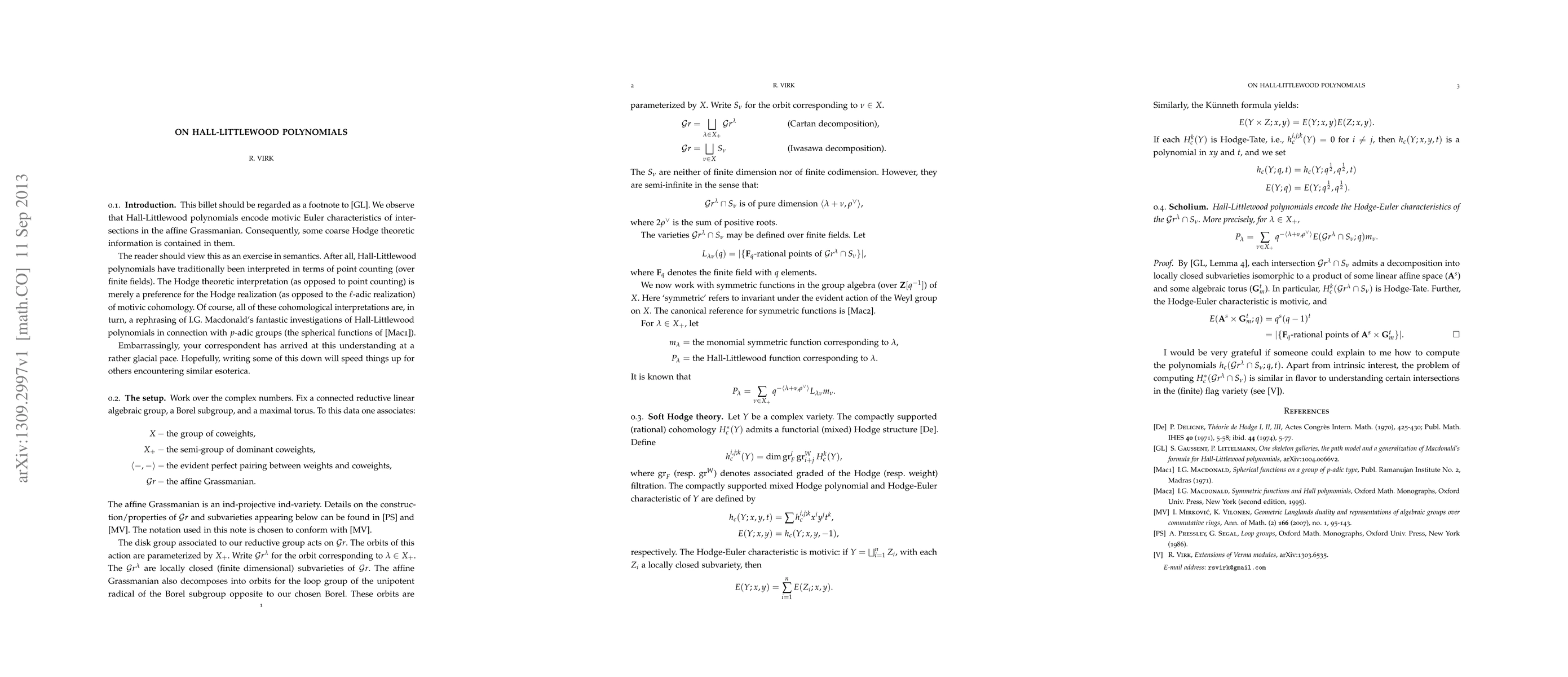 **Summary:** This paper explores Hall-Littlewood polynomials, providing new insights into their properties and offering a fresh perspective on their mathematical significance within algebraic combinatorics. The findings contribute to a deeper understanding of these essential functions in the study of symmetric functions.