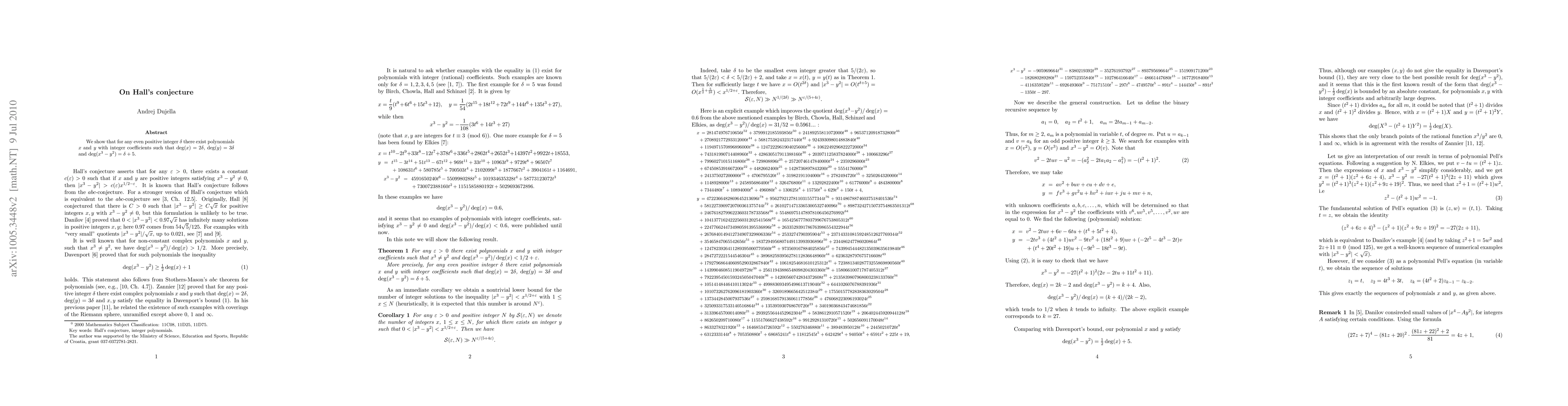 We show that for any even positive integer d there exist polynomials x and y with integer coefficients such that deg(x) = 2d, deg(y) = 3d and deg(x^3 - y^2) = d + 5.