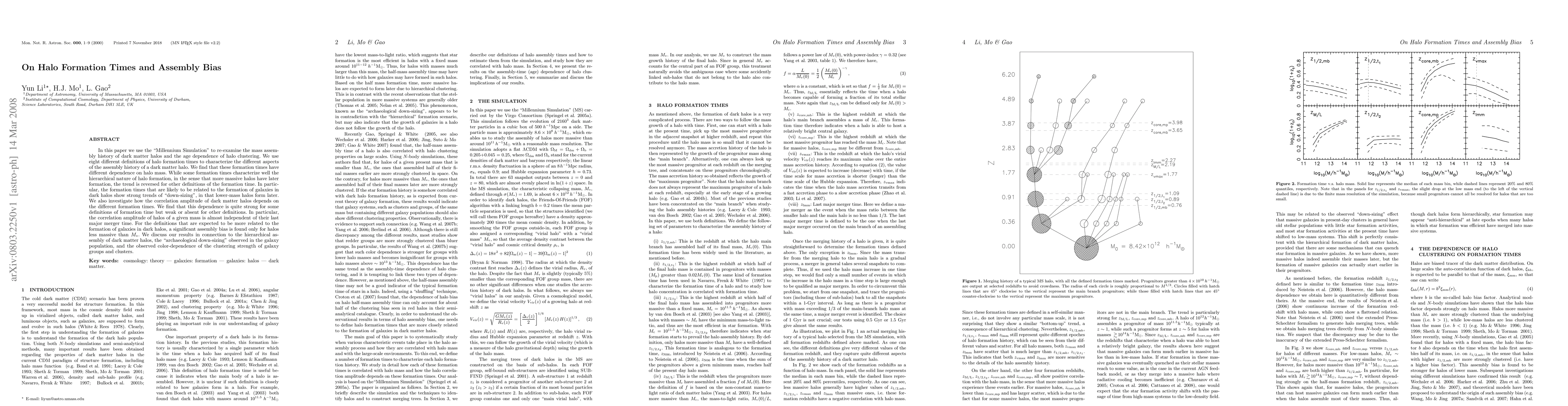 This paper examines the mass assembly history of dark matter halos using the Millennium Simulation and various definitions of halo formation times, finding that while some formation times align with the hierarchical nature of halo formation, others show a "down-sizing" trend where lower-mass halos form later. It also reveals a significant assembly bias for less massive halos and discusses implications for galaxy formation and clustering.