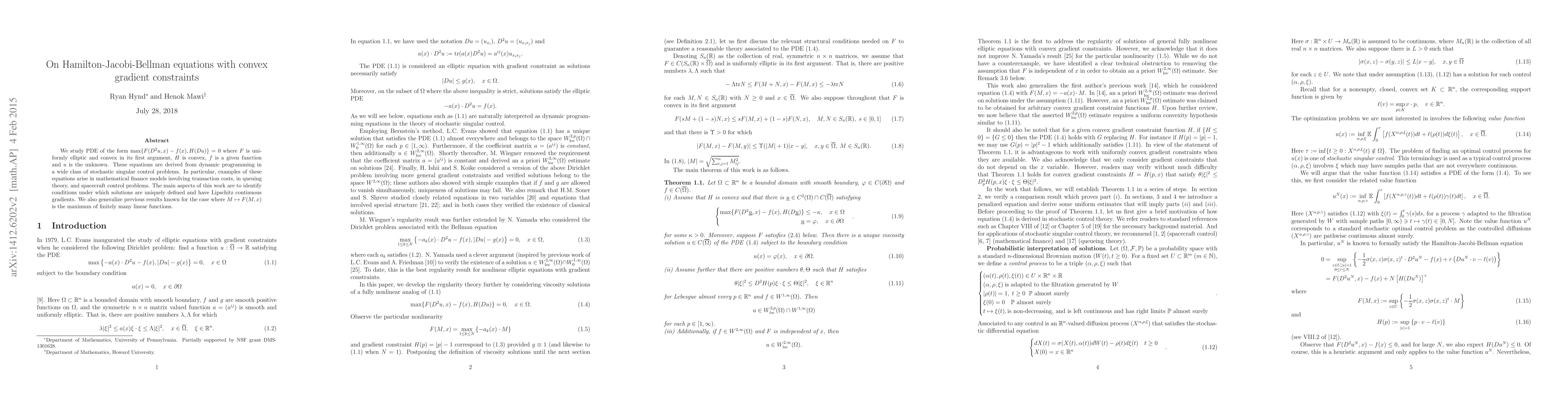 This paper studies a type of partial differential equation used in dynamic programming to solve control problems, finding conditions for unique solutions with smooth gradients.