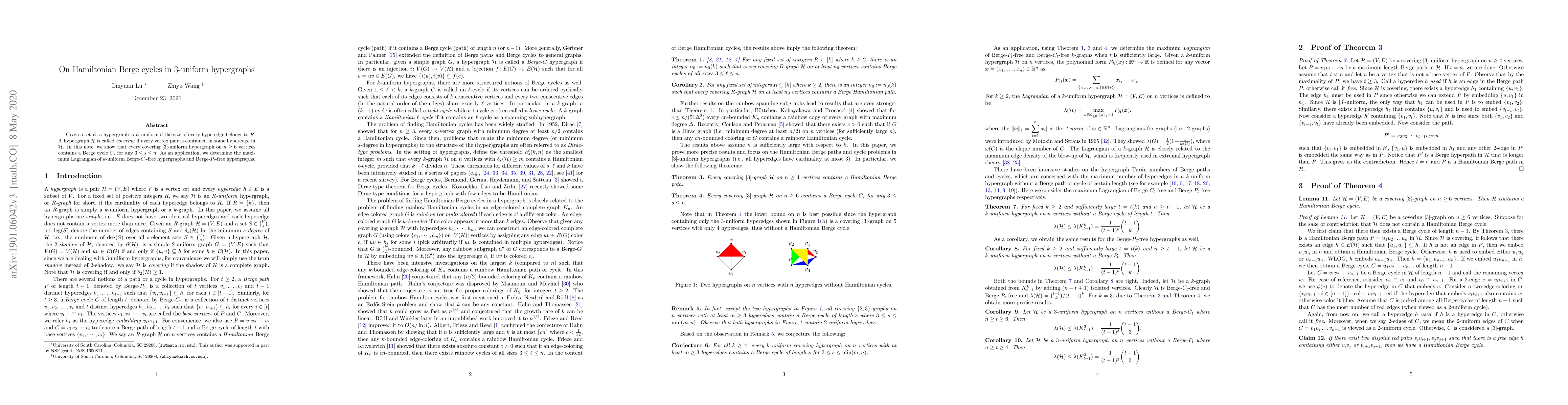 This paper proves that every covering $3$-uniform hypergraph on $n\geq 6$ vertices contains a Berge cycle of any length $3\leq s\leq n$. It also determines the maximum Lagrangian for $k$-uniform hypergraphs that do not contain Berge cycles or paths of a given length.