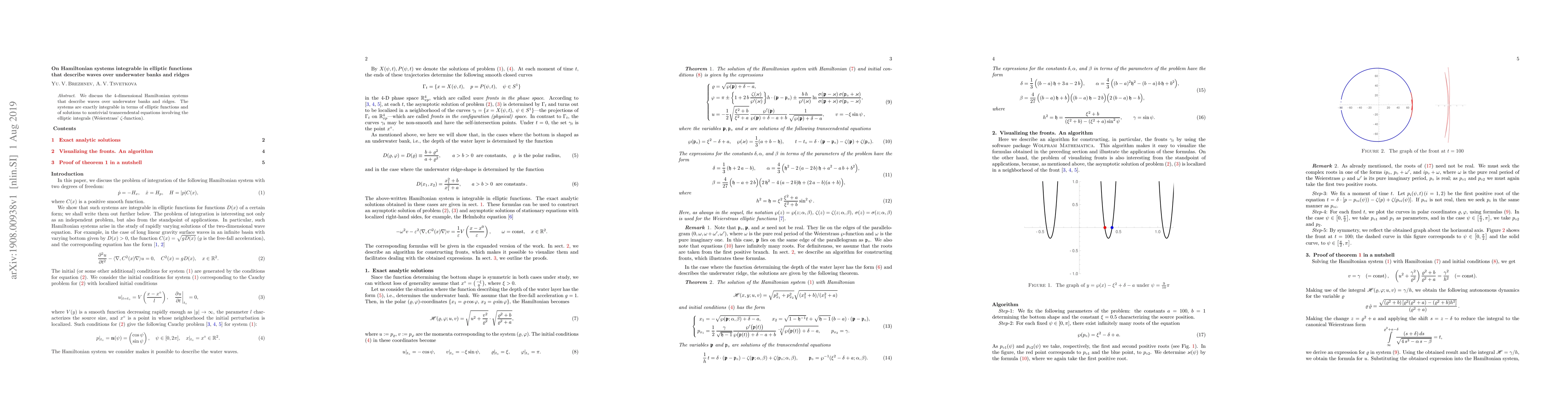 Researchers found 4-dimensional Hamiltonian systems that describe ocean waves over underwater banks can be solved using elliptic functions and transcendental equations involving the Weierstrass zeta function.
