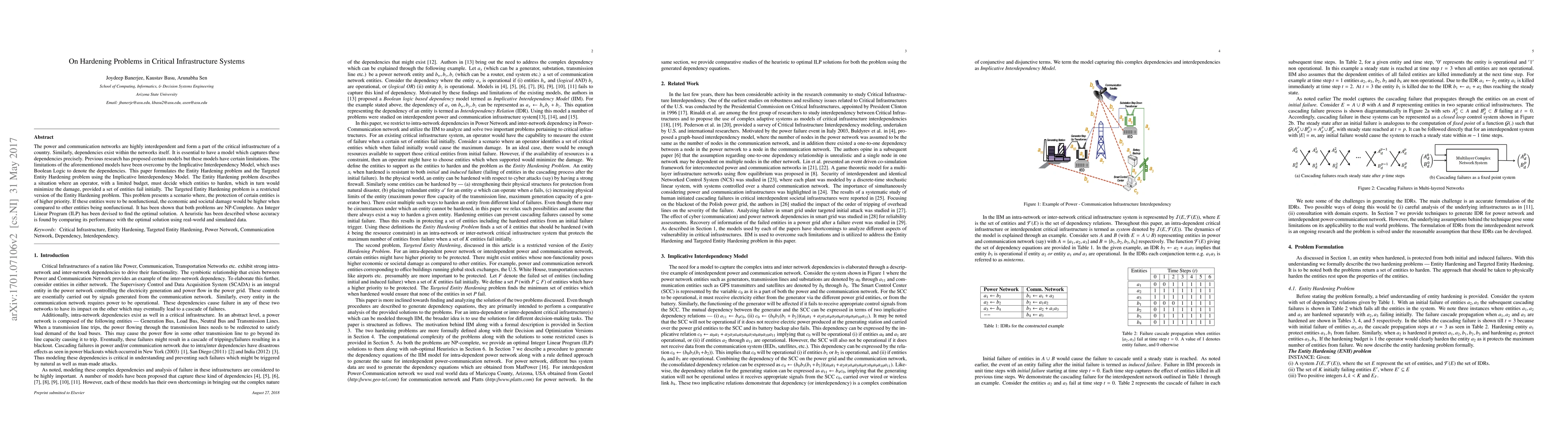 The power and communication networks are highly interdependent and form a part of the critical infrastructure of a country. Similarly, dependencies exist within the networks itself. It is essential to have a model which captures these dependencies precisely. Previous research has proposed certain models but these models have certain limitations. The limitations of the aforementioned models have been overcome by the Implicative Interdependency Model, which uses Boolean Logic to denote the dependencies. This paper formulates the Entity Hardening problem and the Targeted Entity Hardening problem using the Implicative Interdependency Model. The Entity Hardening problem describes a situation where an operator, with a limited budget, must decide which entities to harden, which in turn would minimize the damage, provided a set of entities fail initially. The Targeted Entity Hardening problem is a restricted version of the Entity Hardening problem. This problem presents a scenario where, the protection of certain entities is of higher priority. If these entities were to be nonfunctional, the economic and societal damage would be higher when compared to other entities being nonfunctional. It has been shown that both problems are NP-Complete. An Integer Linear Program (ILP) has been devised to find the optimal solution. A heuristic has been described whose accuracy is found by comparing its performance with the optimal solution using real-world and simulated data.