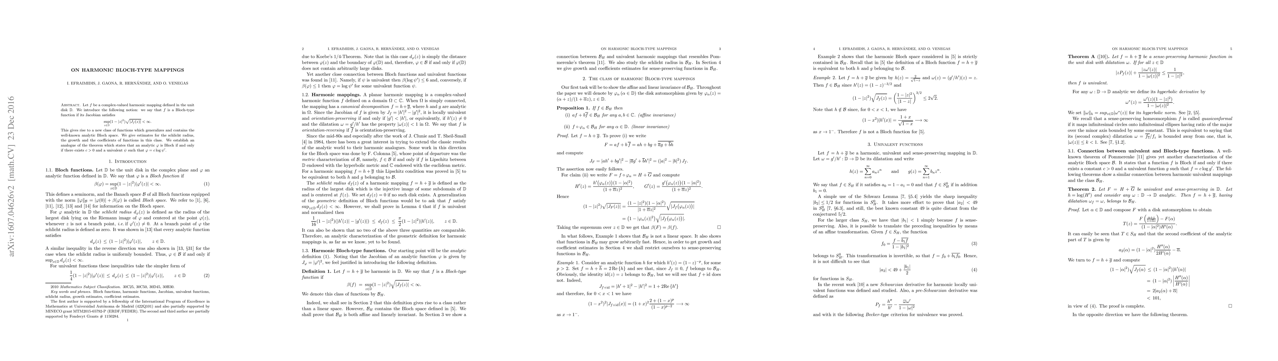Let $f$ be a complex-valued harmonic mapping defined in the unit disk $\mathbb D$. We introduce the following notion: we say that $f$ is a Bloch-type function if its Jacobian satisfies $$ \sup_{z\in\mathbb D}(1-|z|^2)\sqrt{|J_f(z)|}<\infty. $$ This gives rise to a new class of functions which generalizes and contains the well-known analytic Bloch space. We give estimates for the schlicht radius, the growth and the coefficients of functions in this class. We establish an analogue of the theorem which states that an analytic $\varphi$ is Bloch if and only if there exists $c>0$ and a univalent $\psi$ such that $\varphi = c \log \psi'$.