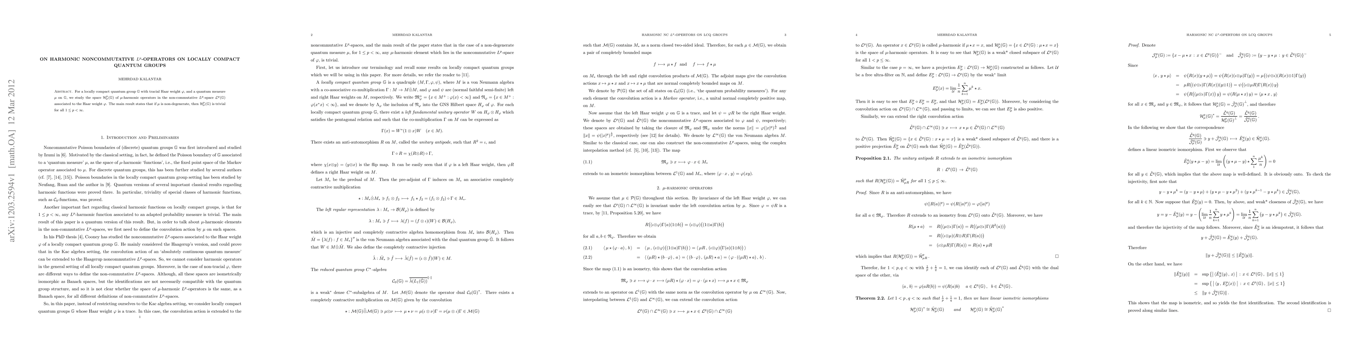 For a locally compact quantum group $\G$ with tracial Haar weight $\varphi$, and a quantum measure $\mu$ on $\G$, we study the space ${H}_\mu^p$ of $\mu$-harmonic operators in the non-commutative $L^p$-space ${L}^p(\G)$ associated to the Haar weight $\varphi$. The main result states that if $\mu$ is non-degenerate, then ${H}_\mu^p$ is trivial for all $1 \leq p < \infty$.