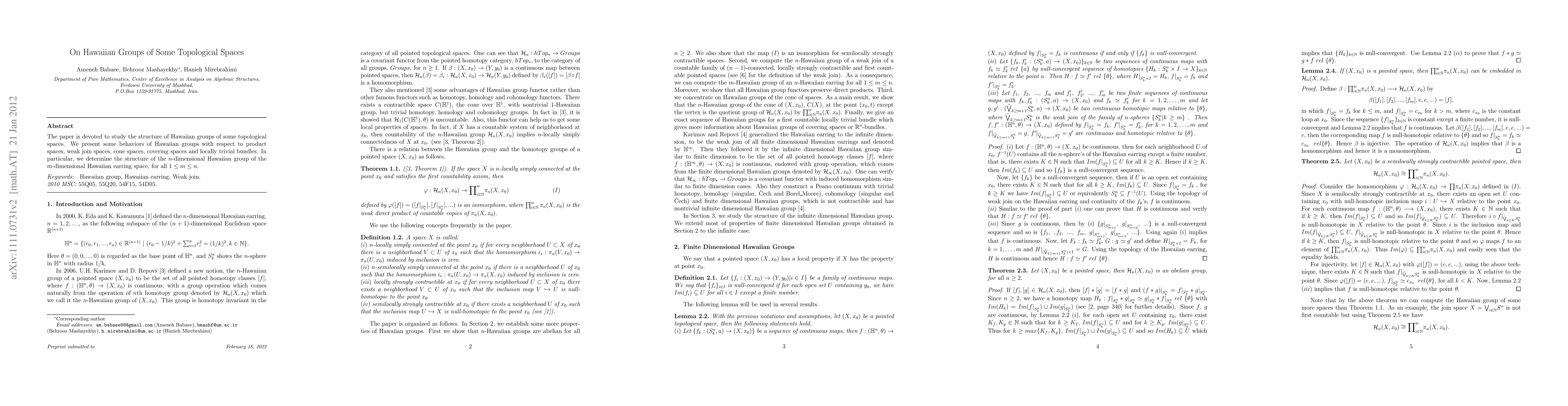 This paper investigates the structural properties of Hawaiian groups in various topological spaces, focusing on their behaviors in product, weak join, cone, covering spaces, and locally trivial bundles. It specifically determines the structure of the $n$-dimensional Hawaiian group for the $m$-dimensional Hawaiian earring space, where $1\leq m\leq n$.