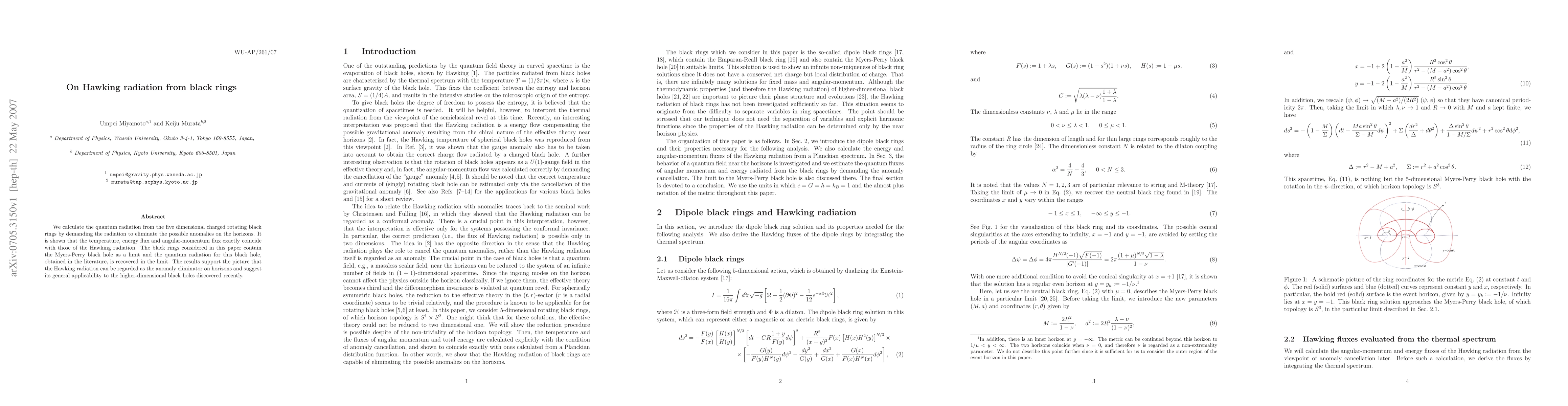 This research is significant as it provides insights into the nature of Hawking radiation from black rings, potentially enhancing our understanding of black hole thermodynamics and higher-dimensional gravity.