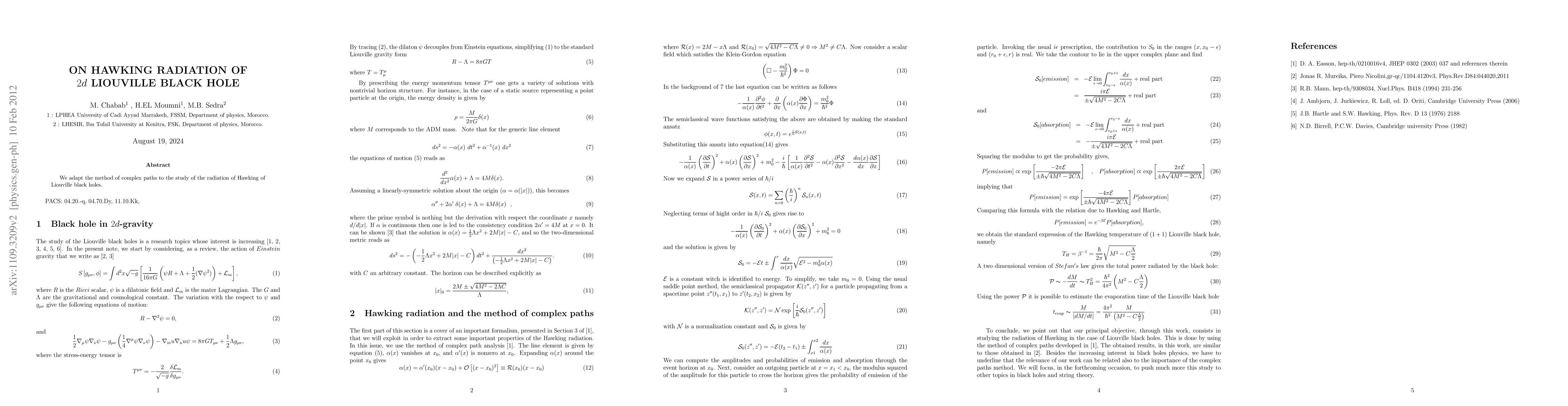 Summary: This paper explores Hawking radiation from 2D Liouville black holes using the method of complex paths, providing insights into the thermodynamic properties of these theoretical black holes.