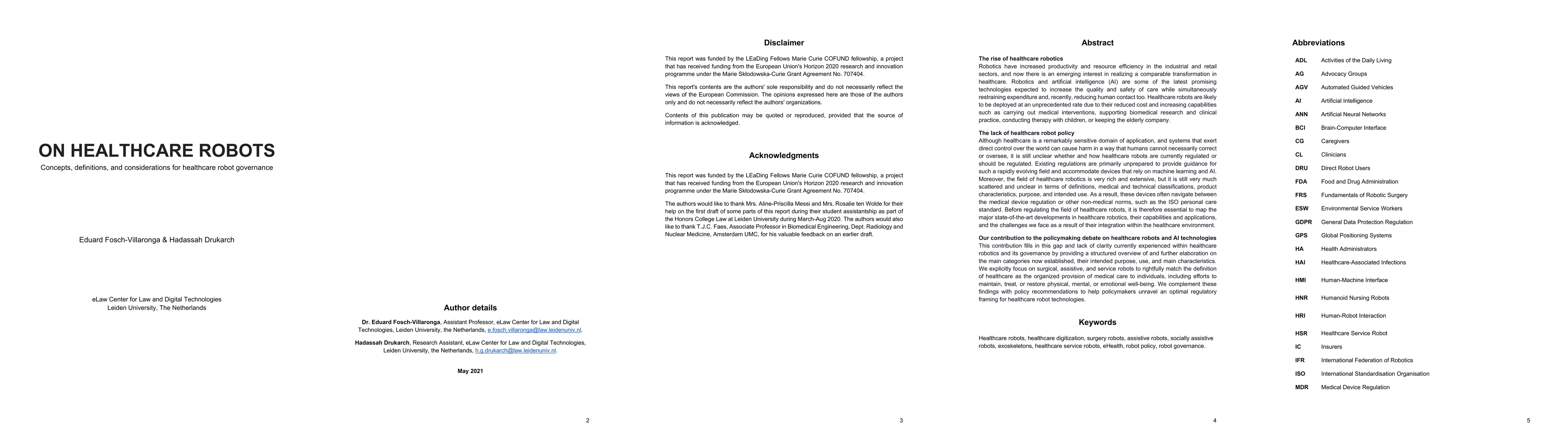 Although healthcare is a remarkably sensitive domain of application, and systems that exert direct control over the world can cause harm in a way that humans cannot necessarily correct or oversee, it is still unclear whether and how healthcare robots are currently regulated or should be regulated. Existing regulations are primarily unprepared to provide guidance for such a rapidly evolving field and accommodate devices that rely on machine learning and AI. Moreover, the field of healthcare robotics is very rich and extensive, but it is still very much scattered and unclear in terms of definitions, medical and technical classifications, product characteristics, purpose, and intended use. As a result, these devices often navigate between the medical device regulation or other non-medical norms, such as the ISO personal care standard. Before regulating the field of healthcare robots, it is therefore essential to map the major state-of-the-art developments in healthcare robotics, their capabilities and applications, and the challenges we face as a result of their integration within the healthcare environment. This contribution fills in this gap and lack of clarity currently experienced within healthcare robotics and its governance by providing a structured overview of and further elaboration on the main categories now established, their intended purpose, use, and main characteristics. We explicitly focus on surgical, assistive, and service robots to rightfully match the definition of healthcare as the organized provision of medical care to individuals, including efforts to maintain, treat, or restore physical, mental, or emotional well-being. We complement these findings with policy recommendations to help policymakers unravel an optimal regulatory framing for healthcare robot technologies