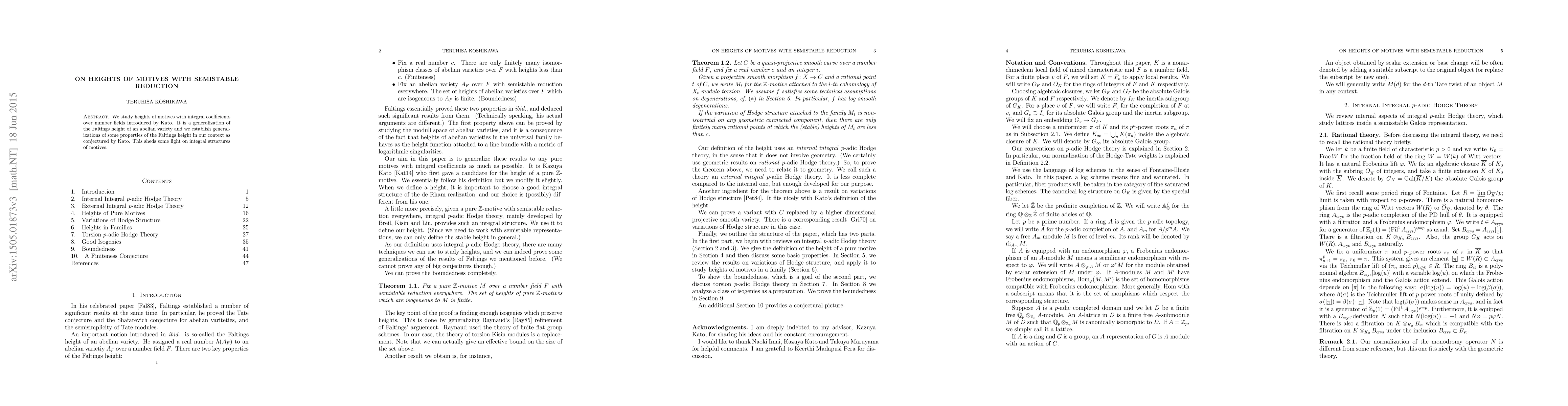 This paper explores the heights of motives with semistable reduction over number fields, generalizing the Faltings height for abelian varieties, and establishes conjectured properties of these heights, contributing to the understanding of integral structures of motives.