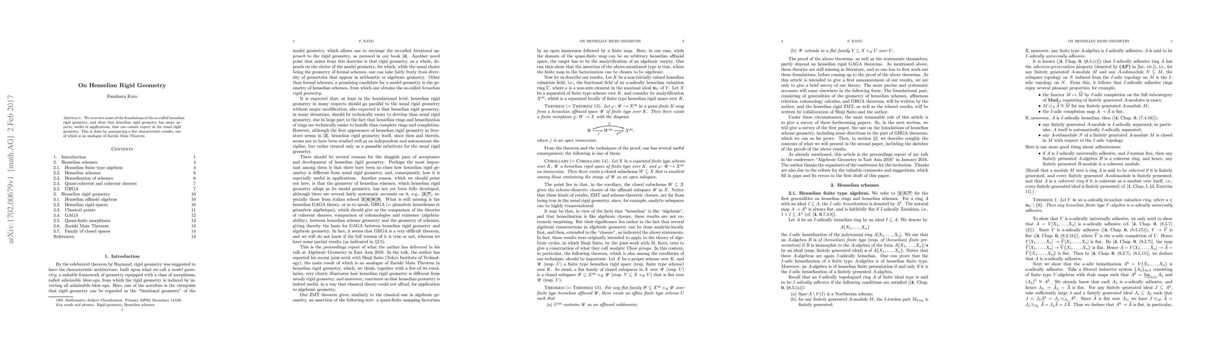 We overview some of the foundations of the so-called henselian rigid geometry, and show that henselian rigid geometry has many aspects, useful in applications, that one cannot expect in the usual rigid geometry. This is done by announcing a few characteristic results, one of which is an analogue of Zariski Main Theorem.