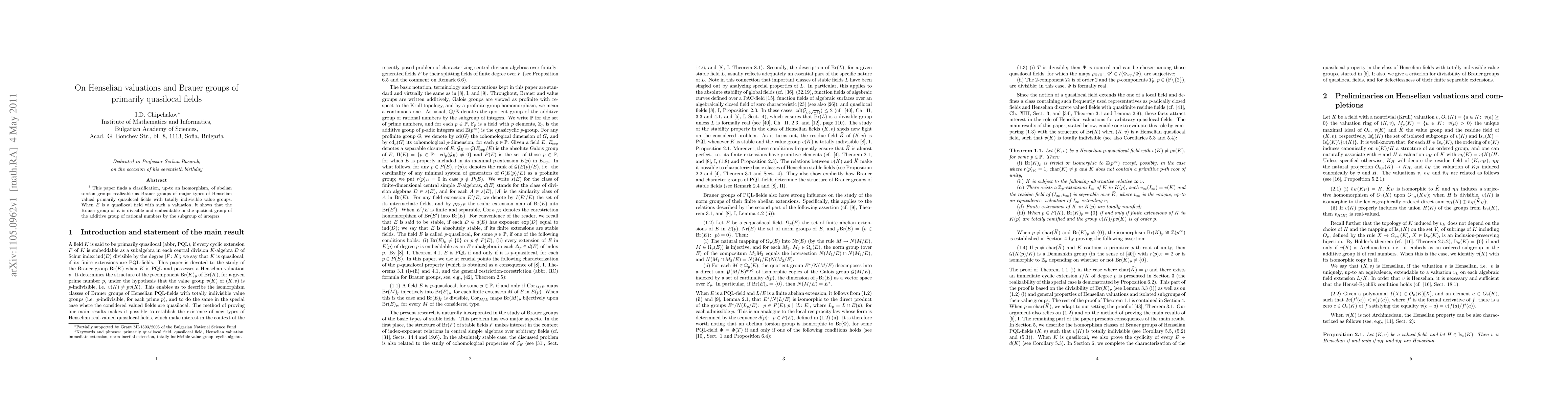 This paper classifies abelian torsion groups as Brauer groups for Henselian valued quasilocal fields with indivisible value groups, demonstrating their divisibility and embeddability in rational number quotients.
