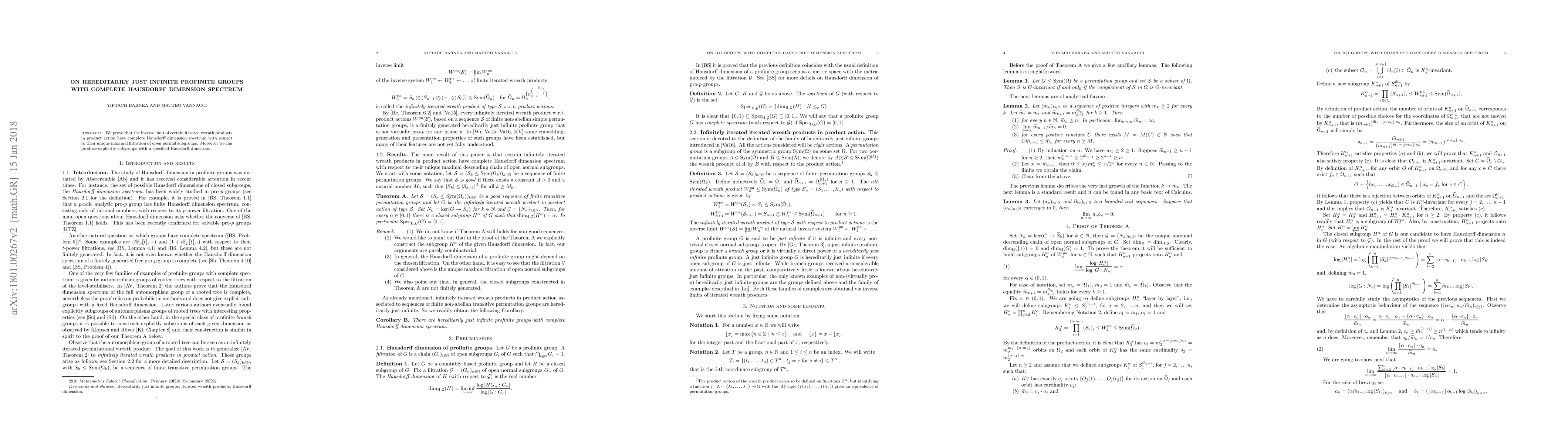 We prove that the inverse limit of certain iterated wreath products in product action have complete Hausdorff dimension spectrum with respect to their unique maximal filtration of open normal subgroups. Moreover we can produce explicitly subgroups with a specified Hausdorff dimension.