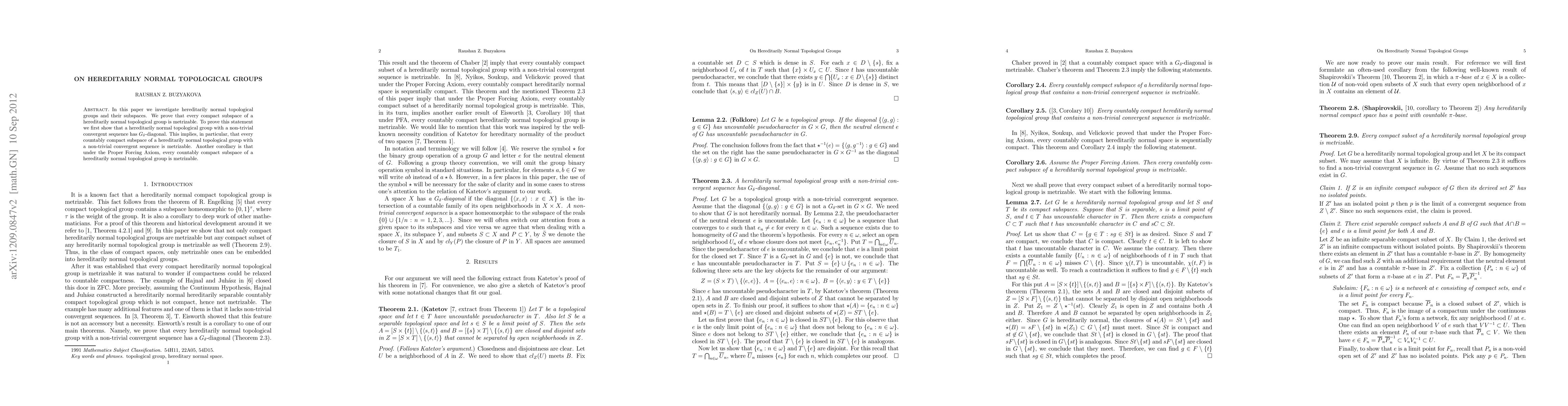This paper explores hereditarily normal topological groups, proving that any compact subspace is metrizable. It establishes that groups with non-trivial convergent sequences possess $G_\delta$-diagonals, leading to the metrizability of countably compact subsets under certain set-theoretic conditions.