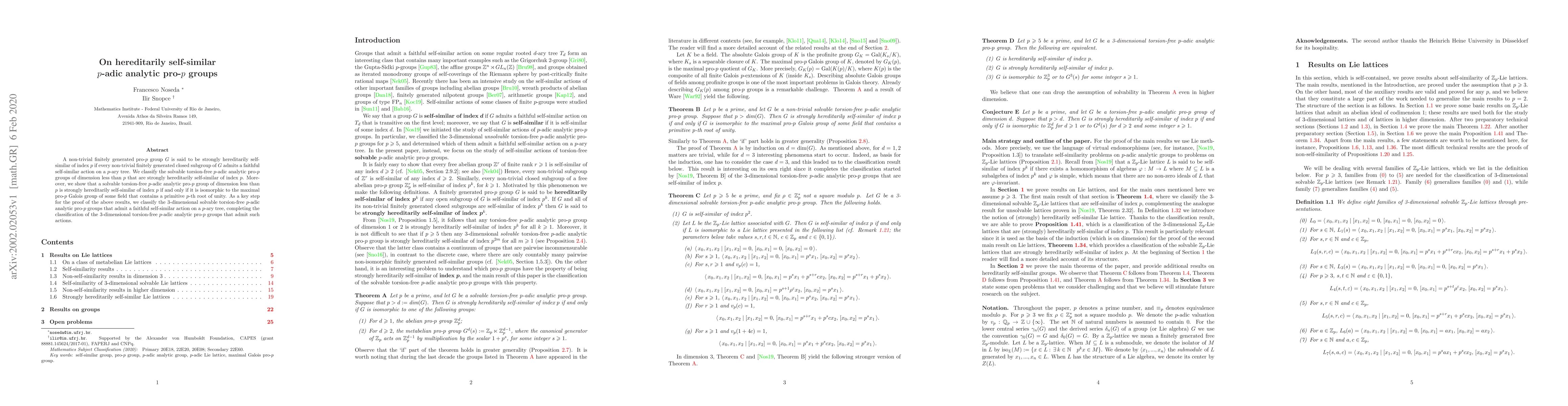 This paper classifies solvable torsion-free $p$-adic analytic pro-$p$ groups of dimension less than $p$ that exhibit strong hereditary self-similarity and shows they are isomorphic to the maximal pro-$p$ Galois groups of fields containing a primitive $p$-th root of unity. It also completes the classification of 3-dimensional solvable torsion-free $p$-adic analytic pro-$p$ groups with self-similar actions on $p$-ary trees.