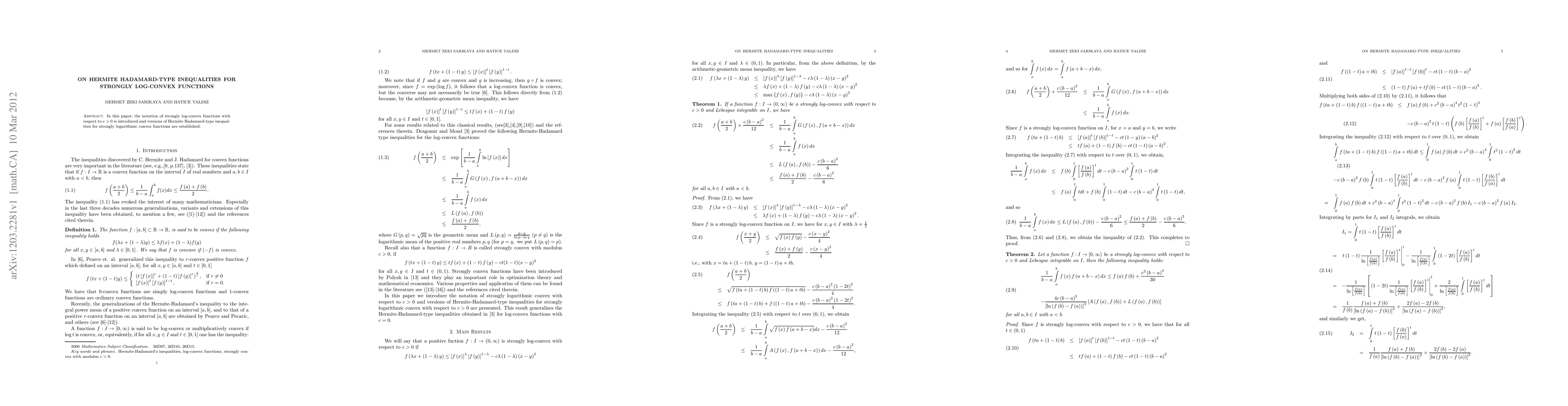 Summary: This paper introduces strongly log-convex functions and establishes Hermite Hadamard-type inequalities for these functions, providing new mathematical results in the realm of convex analysis.