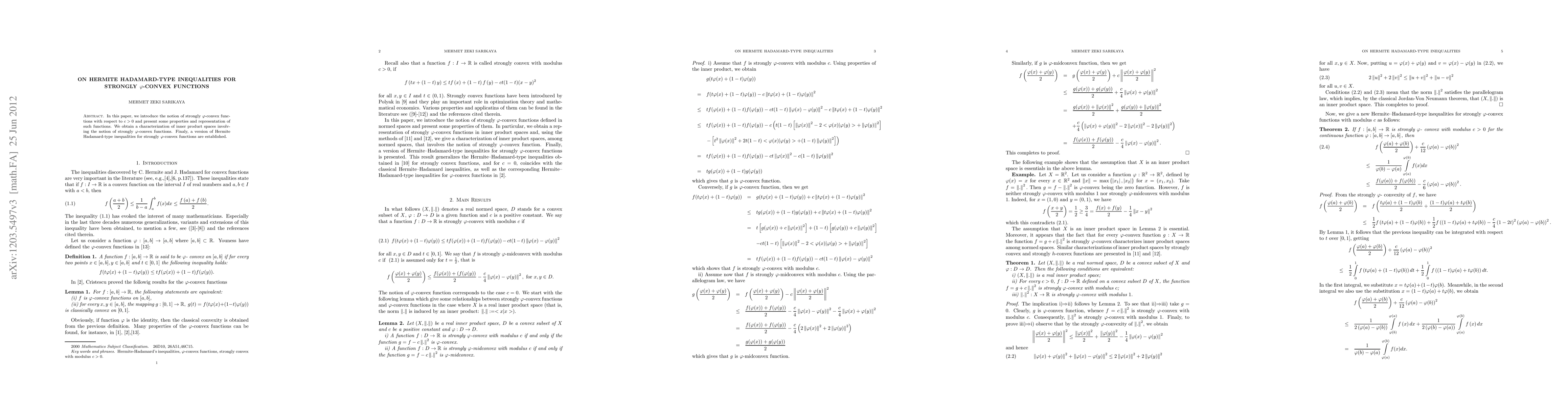 This paper introduces strongly {\varphi}-convex functions and explores their properties and representations. It also establishes Hermite Hadamard-type inequalities for these functions and characterizes inner product spaces using them.