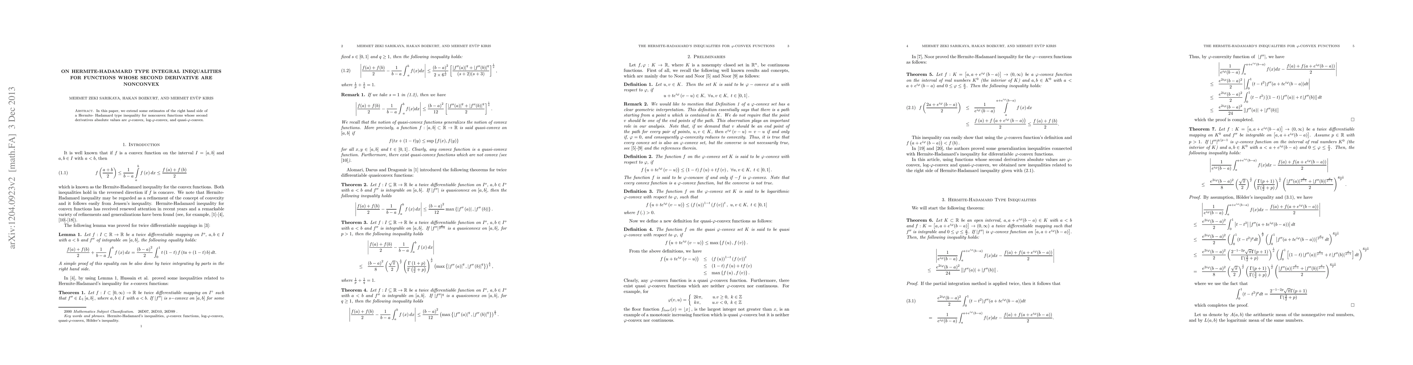 Summary: This paper extends Hermite-Hadamard type integral inequalities for nonconvex functions whose second derivatives exhibit specific convexity properties, including \phi-convexity, log-\phi-convexity, and quasi-\phi-convexity. The study provides refined estimates for the right-hand side of these inequalities.