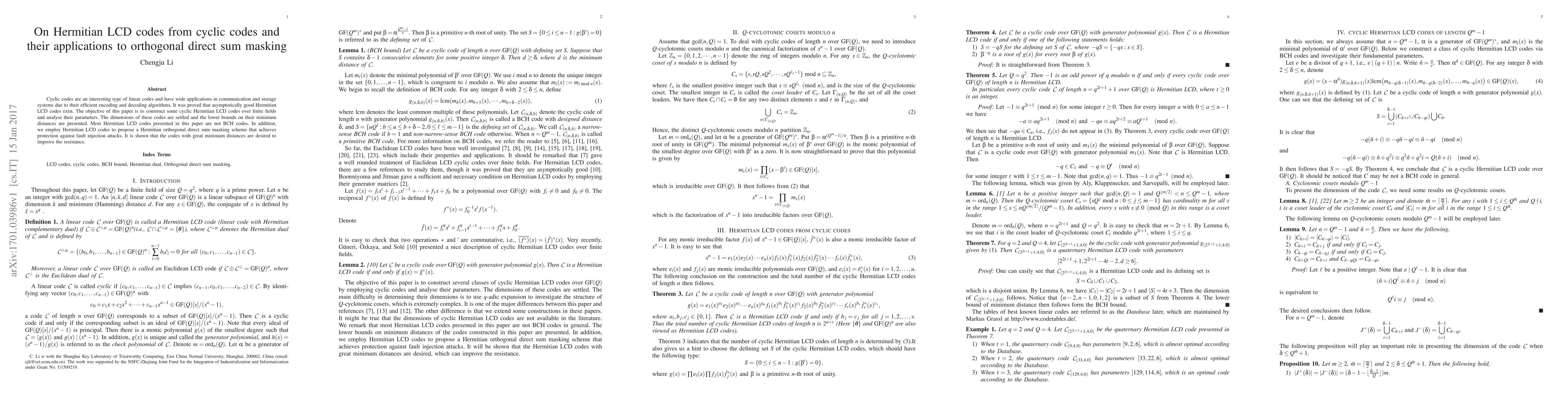 This paper constructs cyclic Hermitian Locally Decodeable Codes (Hermitian LCD codes) over finite fields, analyzing their dimensions and minimum distance bounds. It also introduces a Hermitian orthogonal direct sum masking scheme using these codes to enhance protection against fault injection attacks.