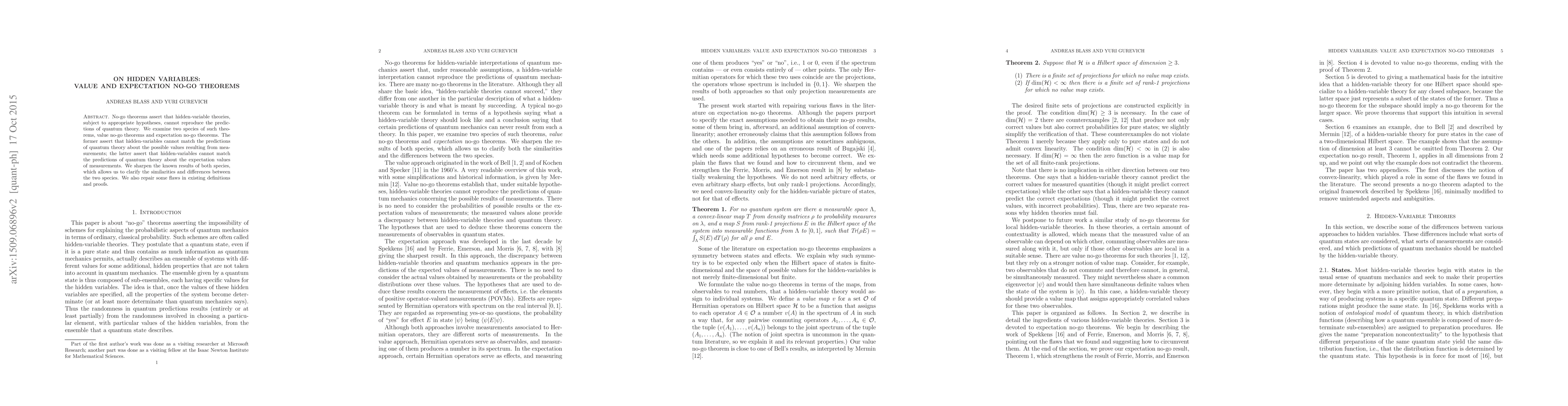 The paper examines hidden-variable theories by strengthening no-go theorems related to value and expectation predictions, utilizing sharper results and clearer definitions.