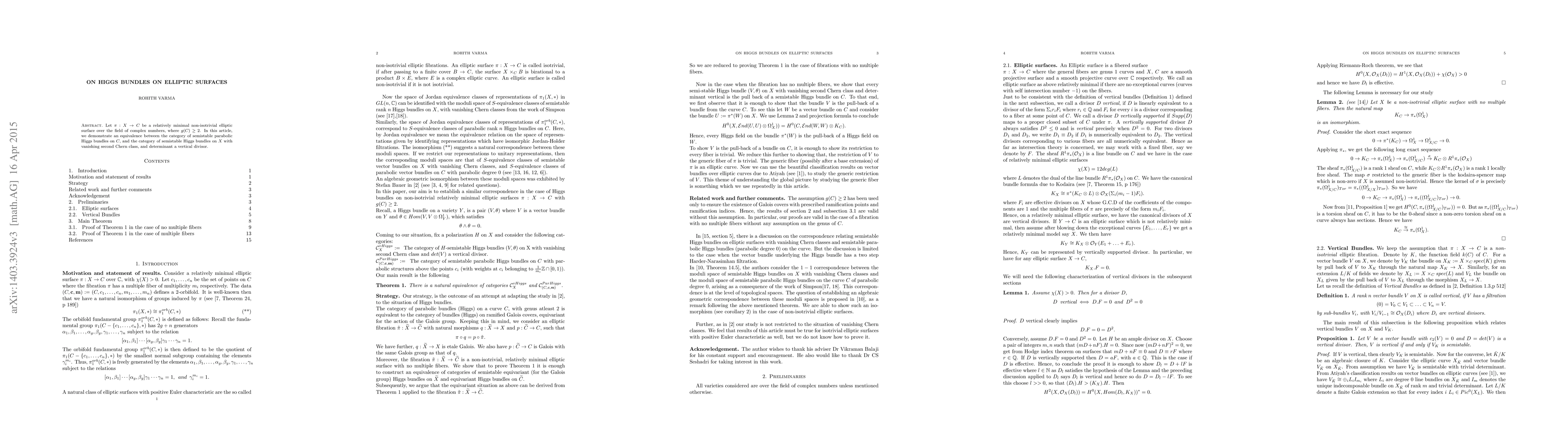This paper establishes an equivalence between categories of Higgs bundles on a non-isotrivial elliptic surface with positive Euler characteristic and categories of Parabolic Higgs bundles on the base curve. The focus is on the structural relationship and implications of this equivalence.