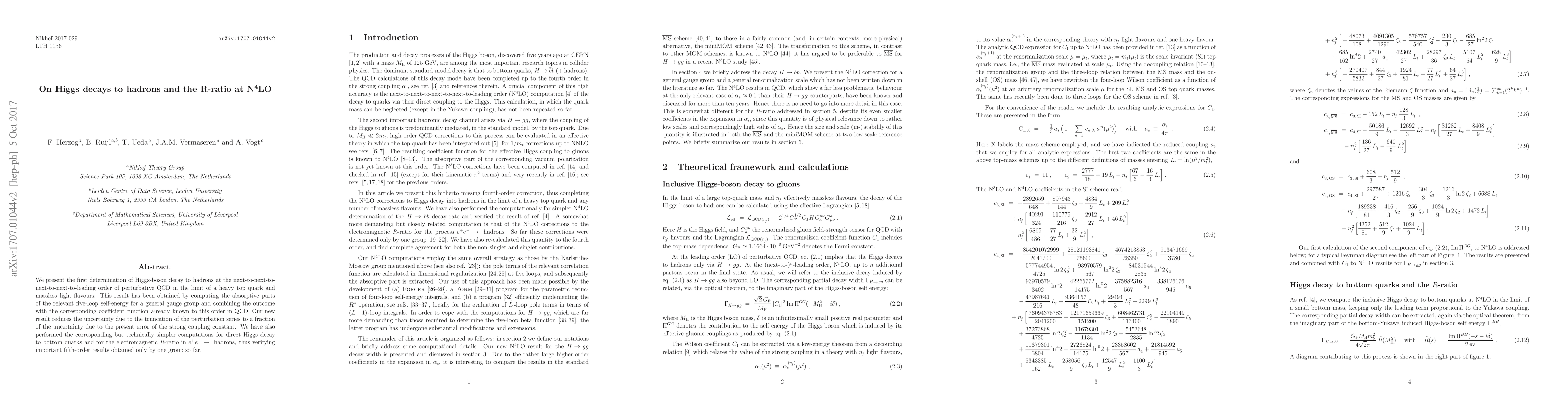 This study calculates the decay of the Higgs boson into hadrons with unprecedented precision, reducing uncertainties in theoretical predictions. It also confirms key fifth-order results in quantum chromodynamics, enhancing our understanding of particle interactions at high energies.